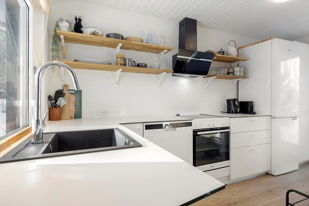 Velkommen til dette dejlige hus, hvor der virkelig er gjort noget ud af indretningen og stilen. Huset er specielt, smagfuldt og hyggeligt indrettet. Indgang i lille entre, der fører til stor og herlig stue med ”slap af” møbler, hvor du kan nyde brændeovnen knitre, se tv, læse en god bog eller bare sludre med familie og venner. Stuen ligger i delvis åben forbindelse med køkkenet. Køkkenet er funktionelt og stemningsfuldt og her er, hvad du skal bruge til at trylle dejlig feriemad frem. Spisestuen har et dejligt langbord, udsigt til haven samt udgang til lækker terrasse. Fra stuen er der adgang til 1 dejligt badeværelse, der er lige så stemningsfulde som resten af huset. Der er 2 værelser, hvor det ene er med dobbeltseng og det andet værelse med 2 enkeltsenge.