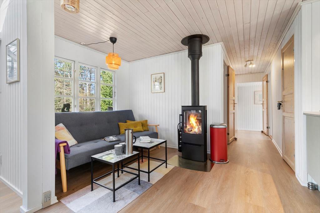 Hyggeligt sommerhus i Fuglslev med brændeovn, internet og hundevenlig have, perfekt til familieferie i Østjylland.