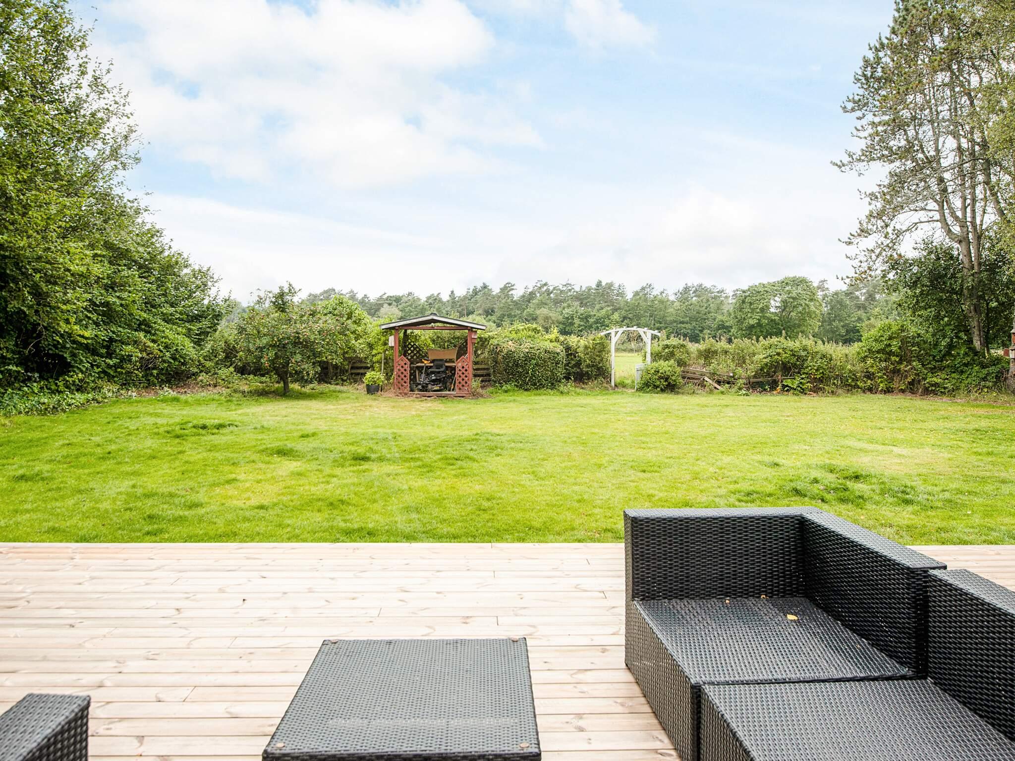 Stor naturgrund med mulighed for afslapning og leg, og vestvendt terrasse hvor I kan nyde en god grillaften mens I ser solen gå ned over markerne.