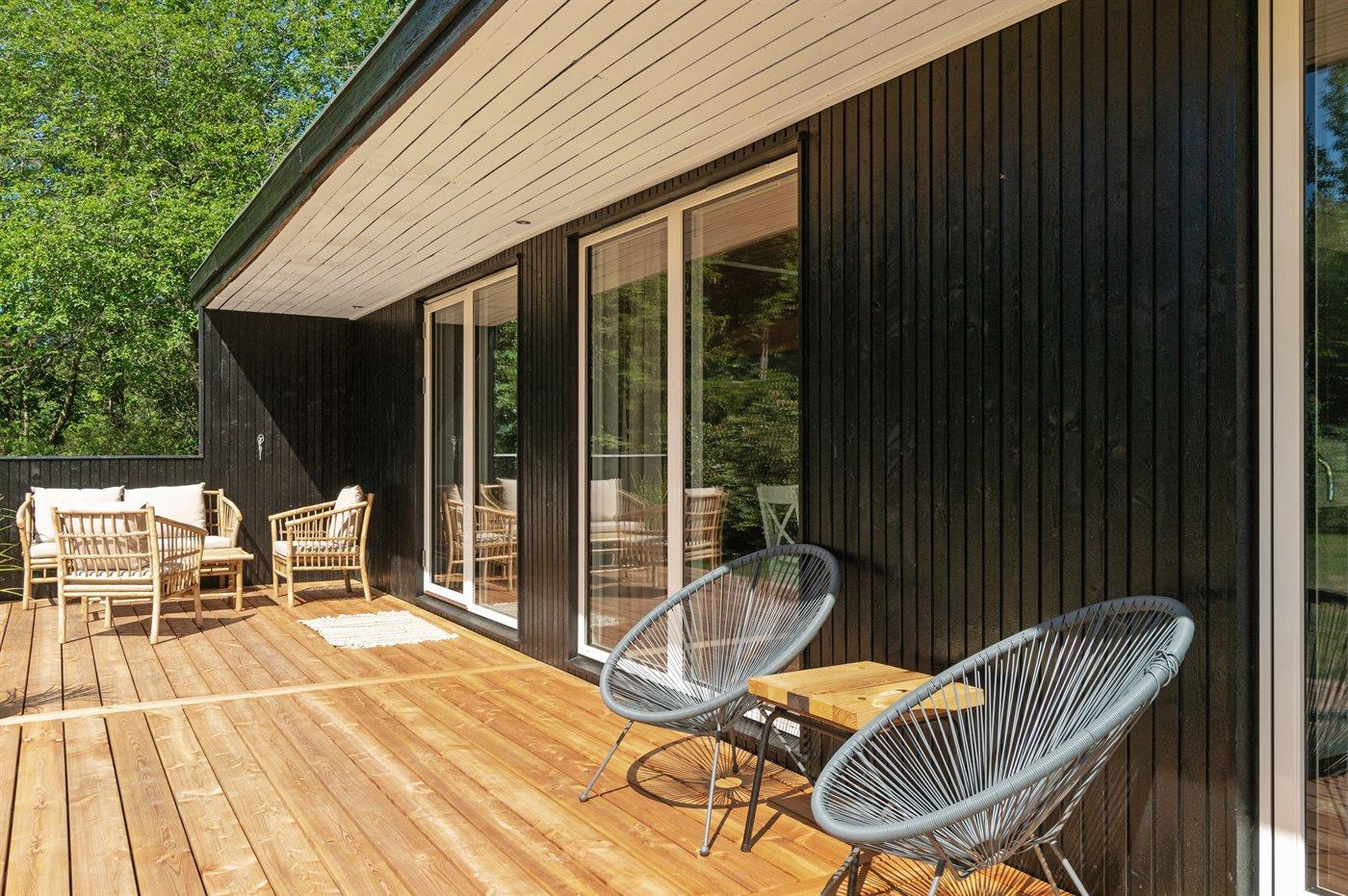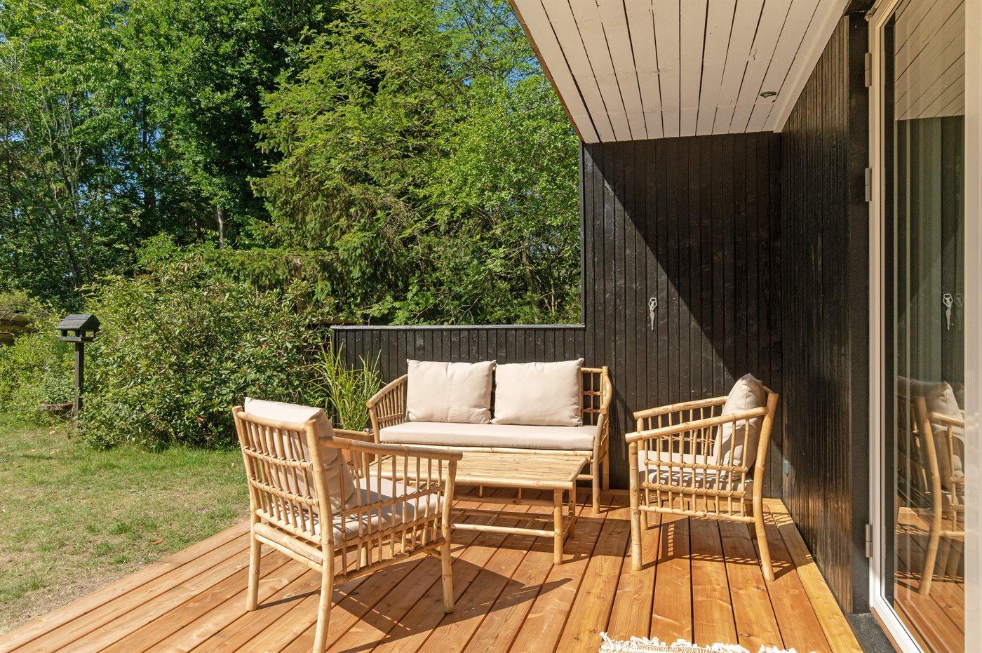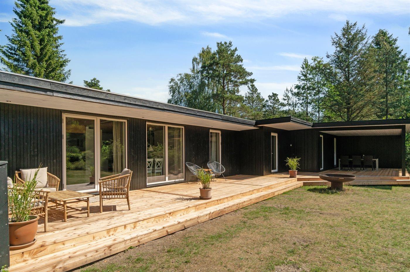Til huset hører et dejligt og til dels overdækket terrasseareal, hvor man kan tilbringe mange timer i det fri.