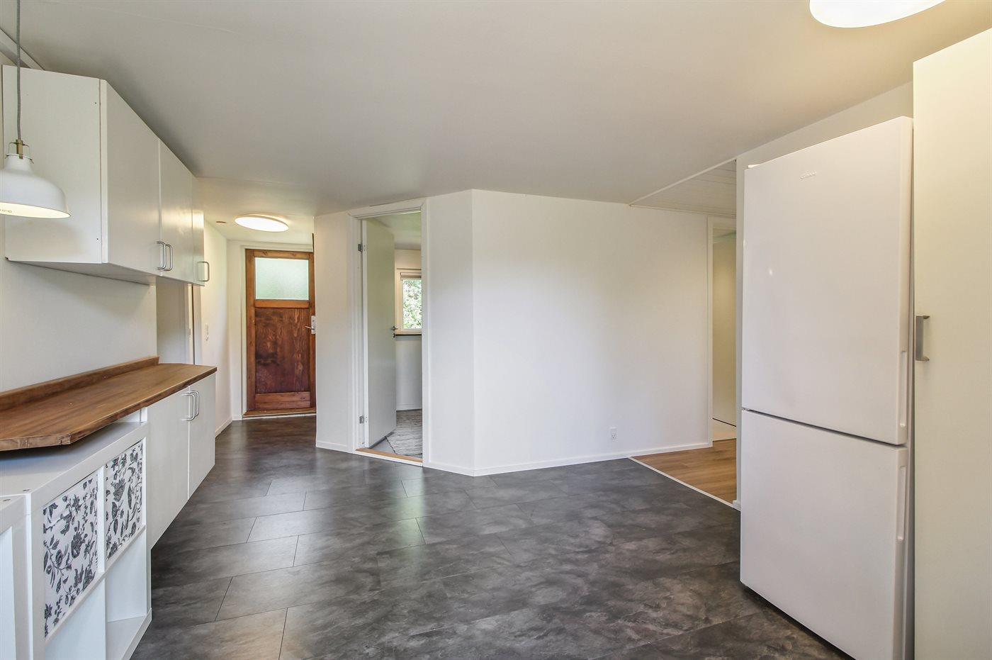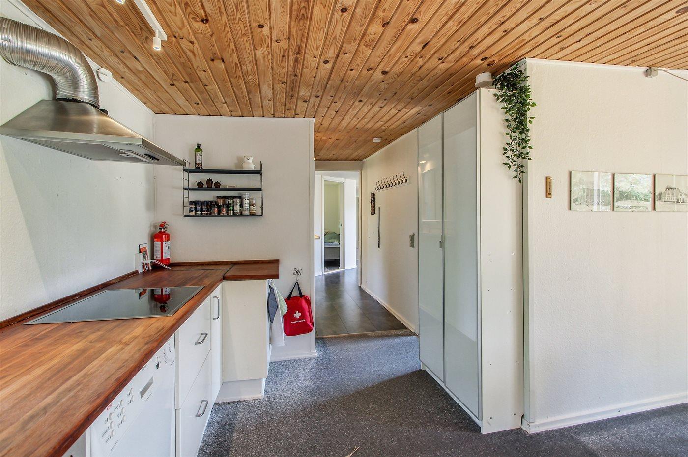 Køkkenet er udstyret med 2 køleskabe. Der er 4 elkogeplader, varmluftovn samt opvaskemaskine.