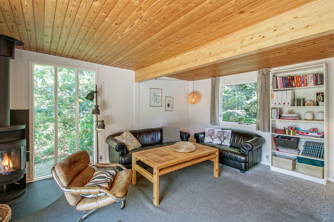Dette rummelige sommerhus er beliggende på en lukket og ugenert grund i et stille og naturskønt sommerhusområde, og i cykelafstand fra Ree-Park (ca. 2,5 km).