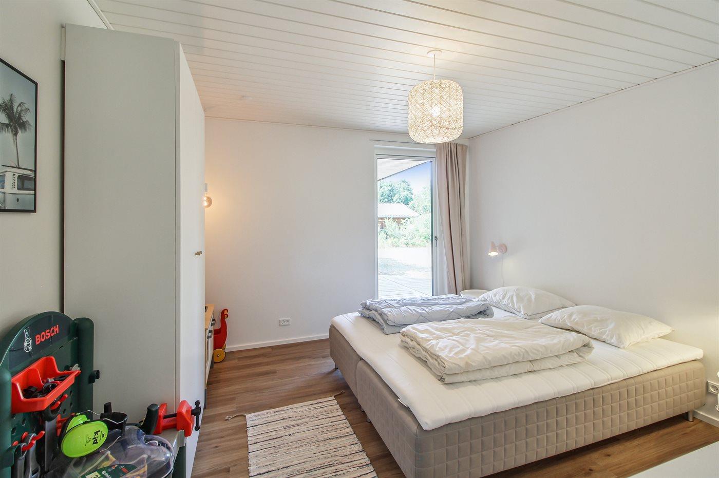 Der er i alt 4 soveværelser. Sovepladserne fordeler sig på: 8 sovepladser i dobbeltsenge. Derudover er der 1 stk. barneseng.