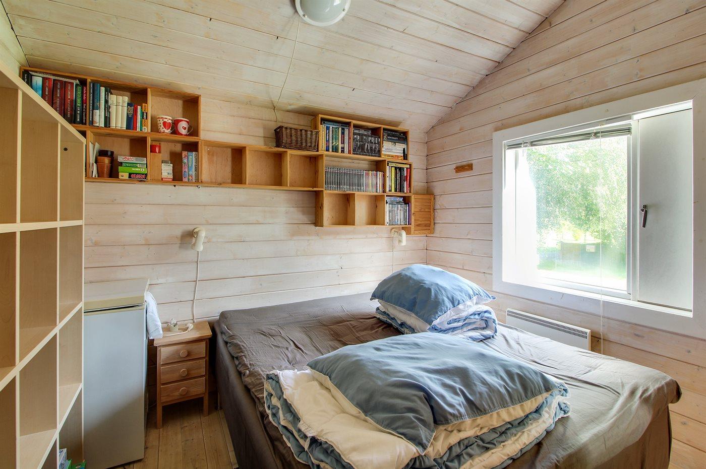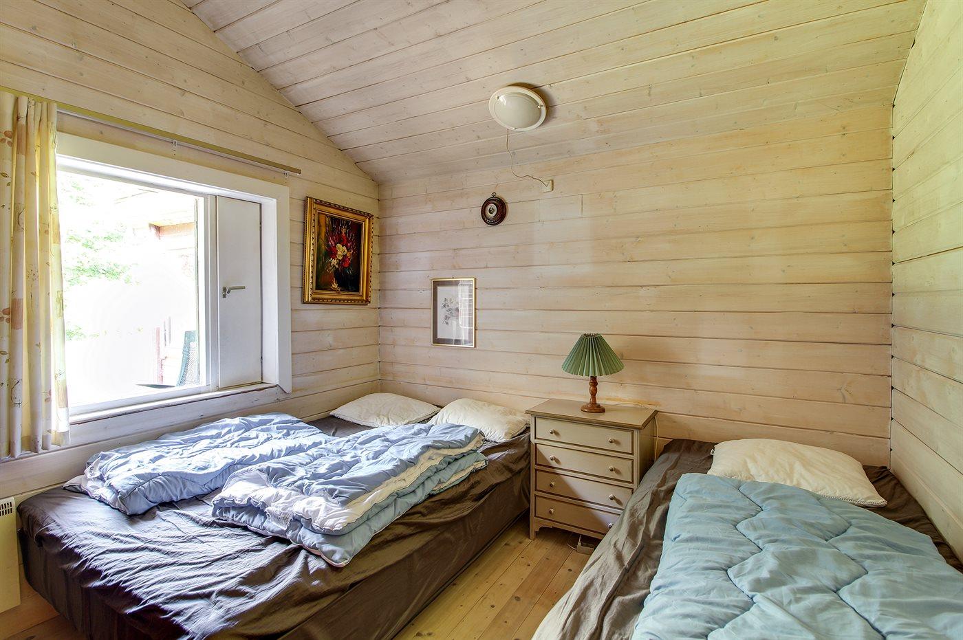 Der er i alt 2 soveværelser. Sovepladserne fordeler sig på: 6 sovepladser i dobbeltsenge. 1 soveplads i enkeltseng. 2 af disse sovepladser befinder sig på husets hems. Derudover er der 2 stk. barnesenge.