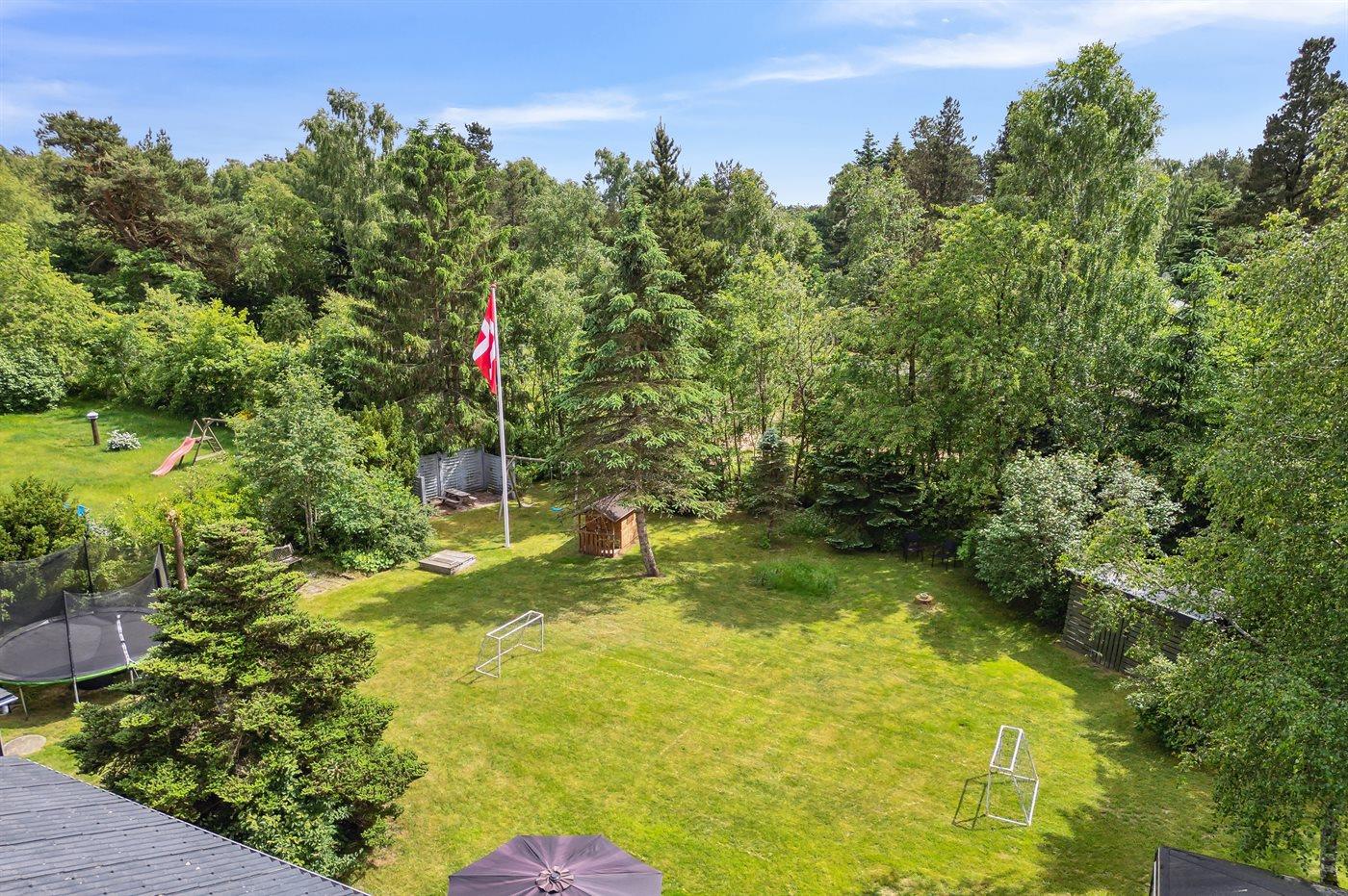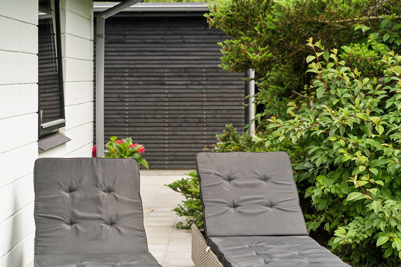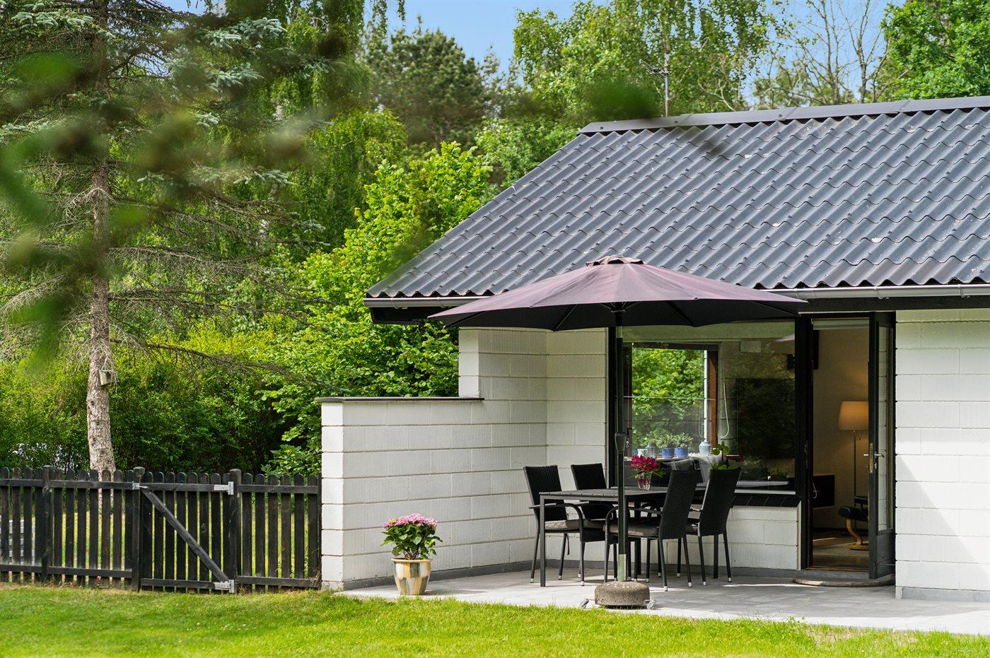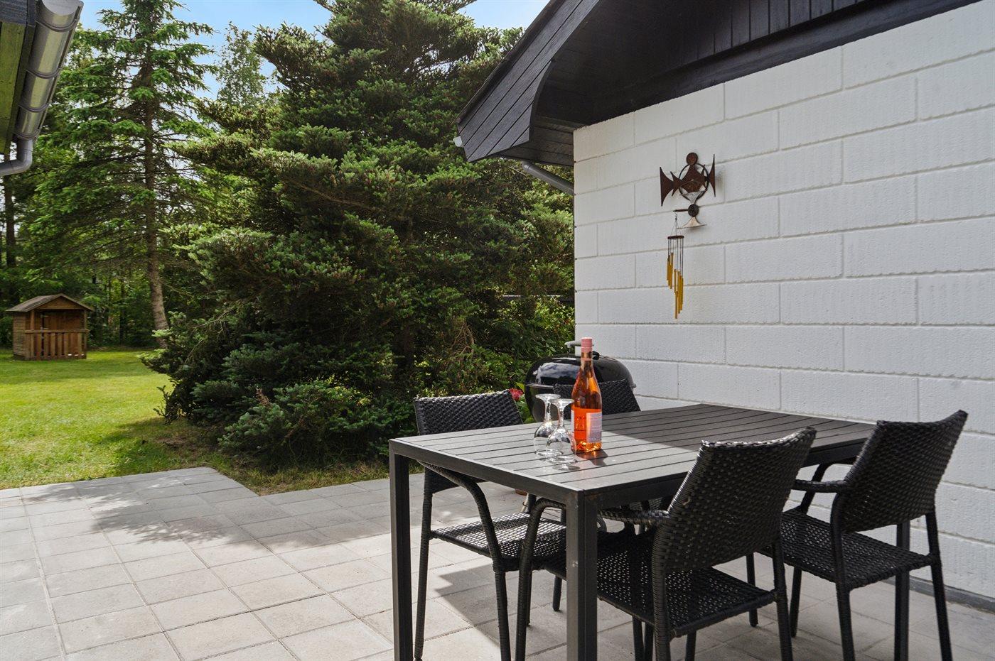 Ferieboligen er beliggende på en 1205 m² stor havegrund. Der er 8000 m til havet. Nærmeste forretning er beliggende i en afstand af 3000 m. Til ferieboligen hører åbent terrasseareal. Desuden er der overdækket terrasse. Gynge. Sandkasse. Legehus. Trampolin. Grill til rådighed. Der er installeret stik til opladning af elbil. Parkering ved ferieboligen.