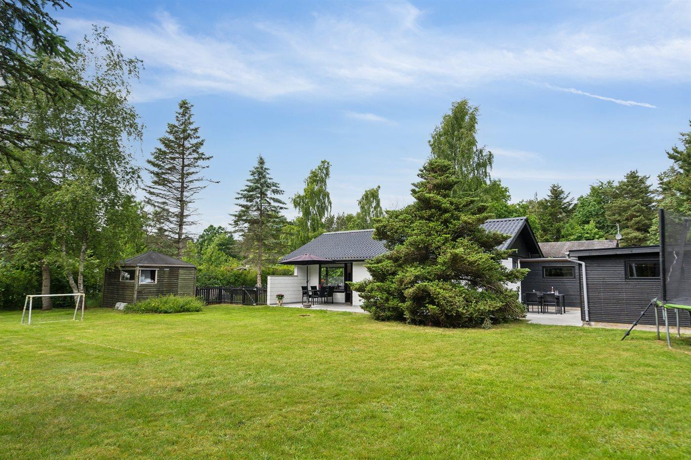 Hyggeligt sommerhus i fredelige omgivelser nær Ebeltoft med stor have, terrasse og gode faciliteter til familieferie.