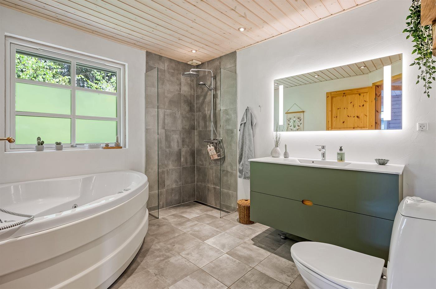 Der er 1 badeværelse med bruser og 1 toilet.. Der er gulvvarme på 1 badeværelse.