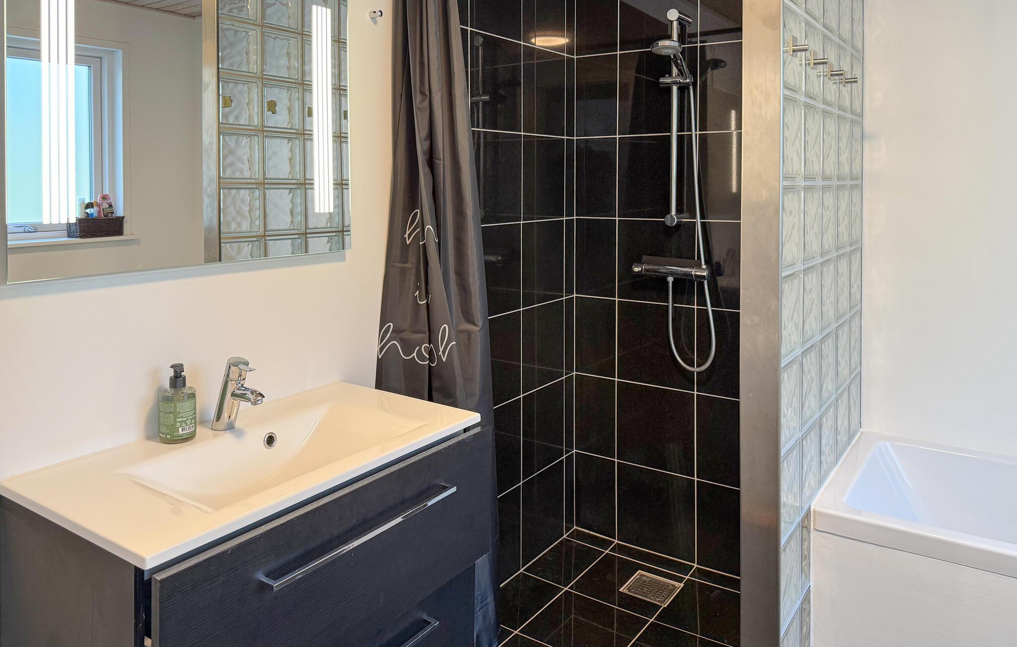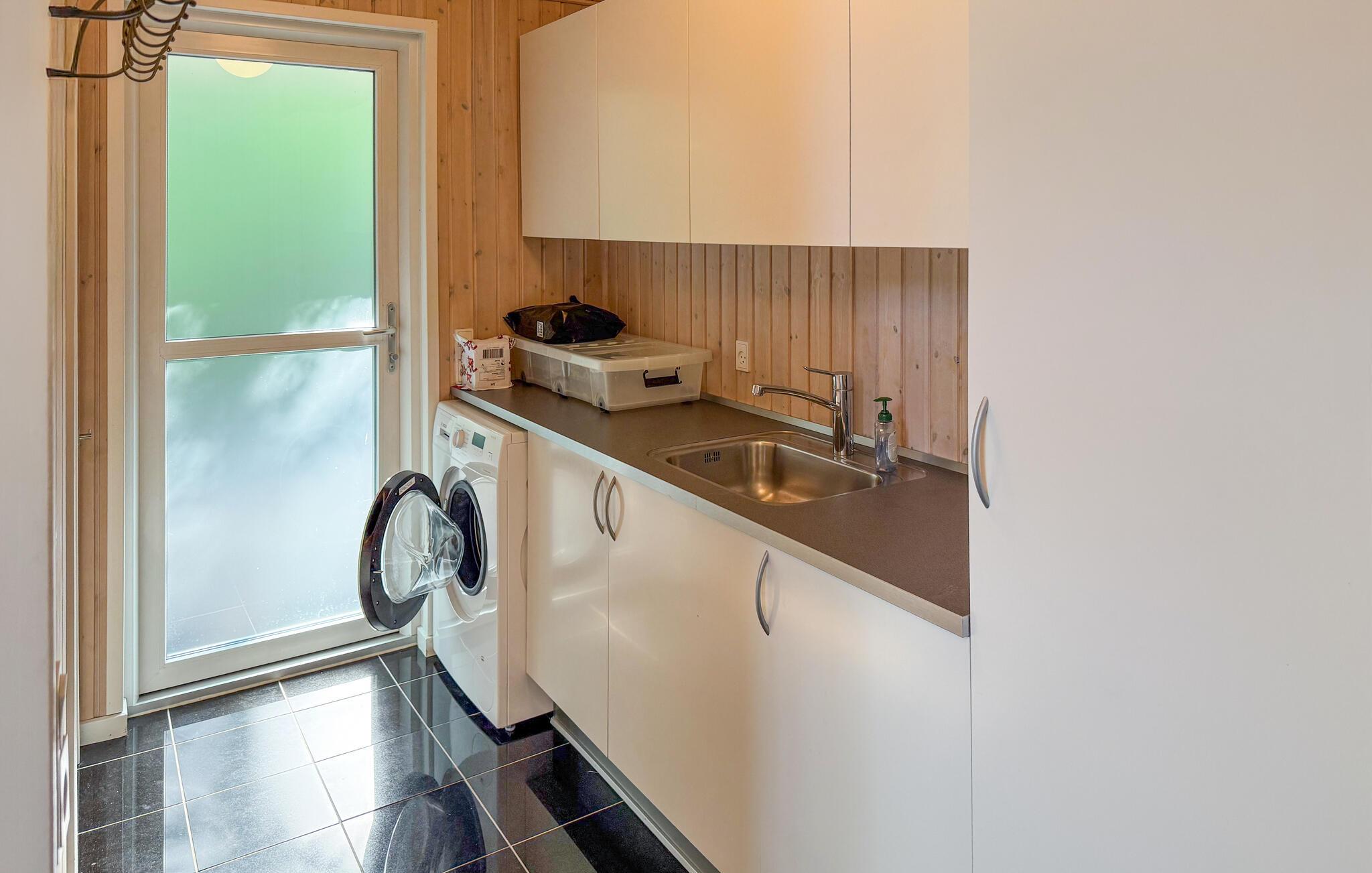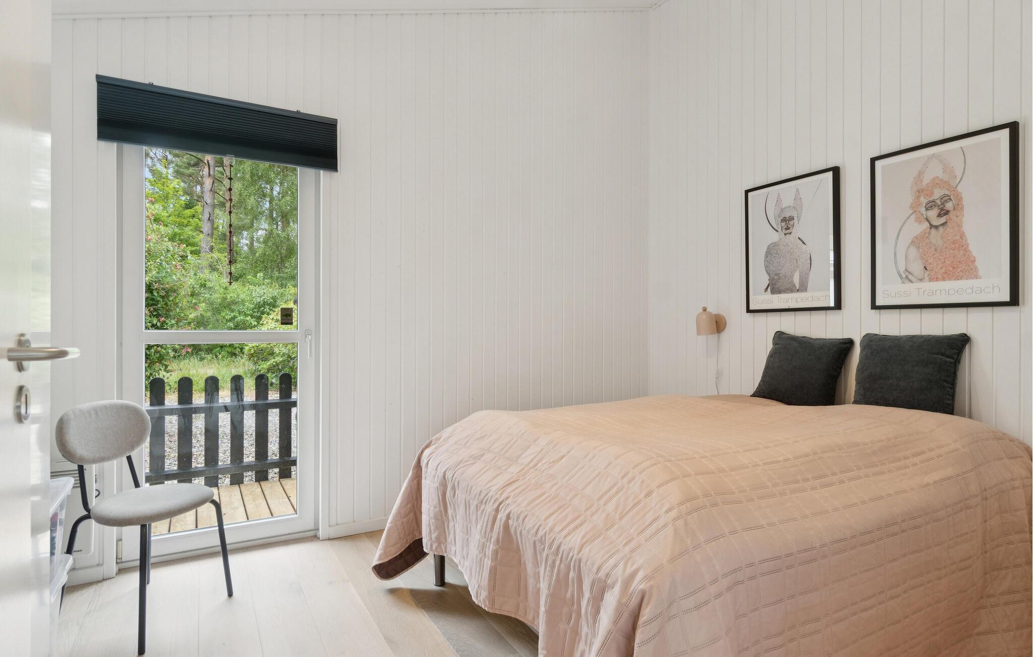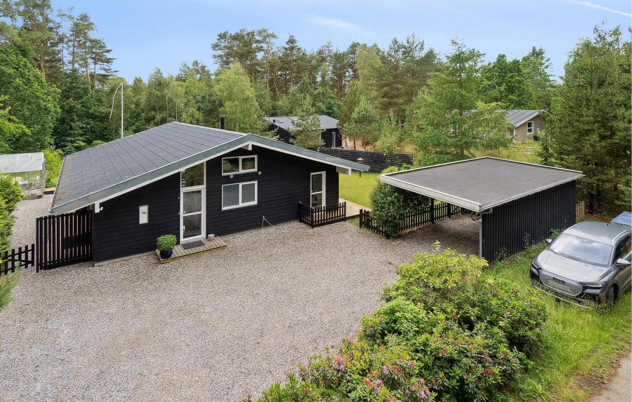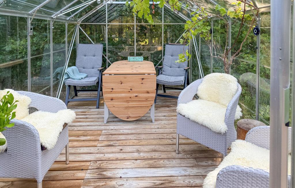Omkranset af en fortryllende grund og tæt på mange spændende udflugtsmål kan I i dette komfortable feriehus lægge hverdagen langt bag jer. Store vinduespartier giver udsigt til det grønne og fylder den smagfuldt indrettede opholdsstue med masser af naturligt dagslys. Nyd hyggelige måltider ved det stemningsfuldt oplyste spisebord, hold hyggelige spilleaftener, eller lyt til brændeovnens stille knitren under afslappede læsestunder på sofaen.