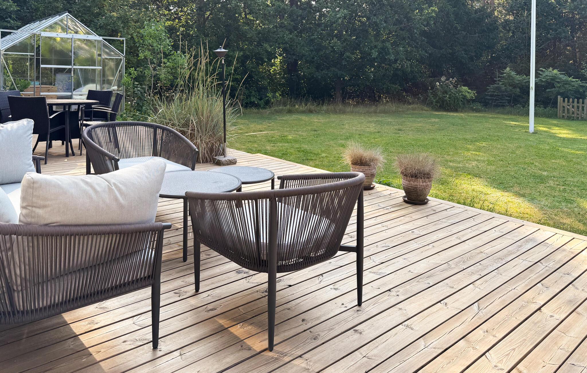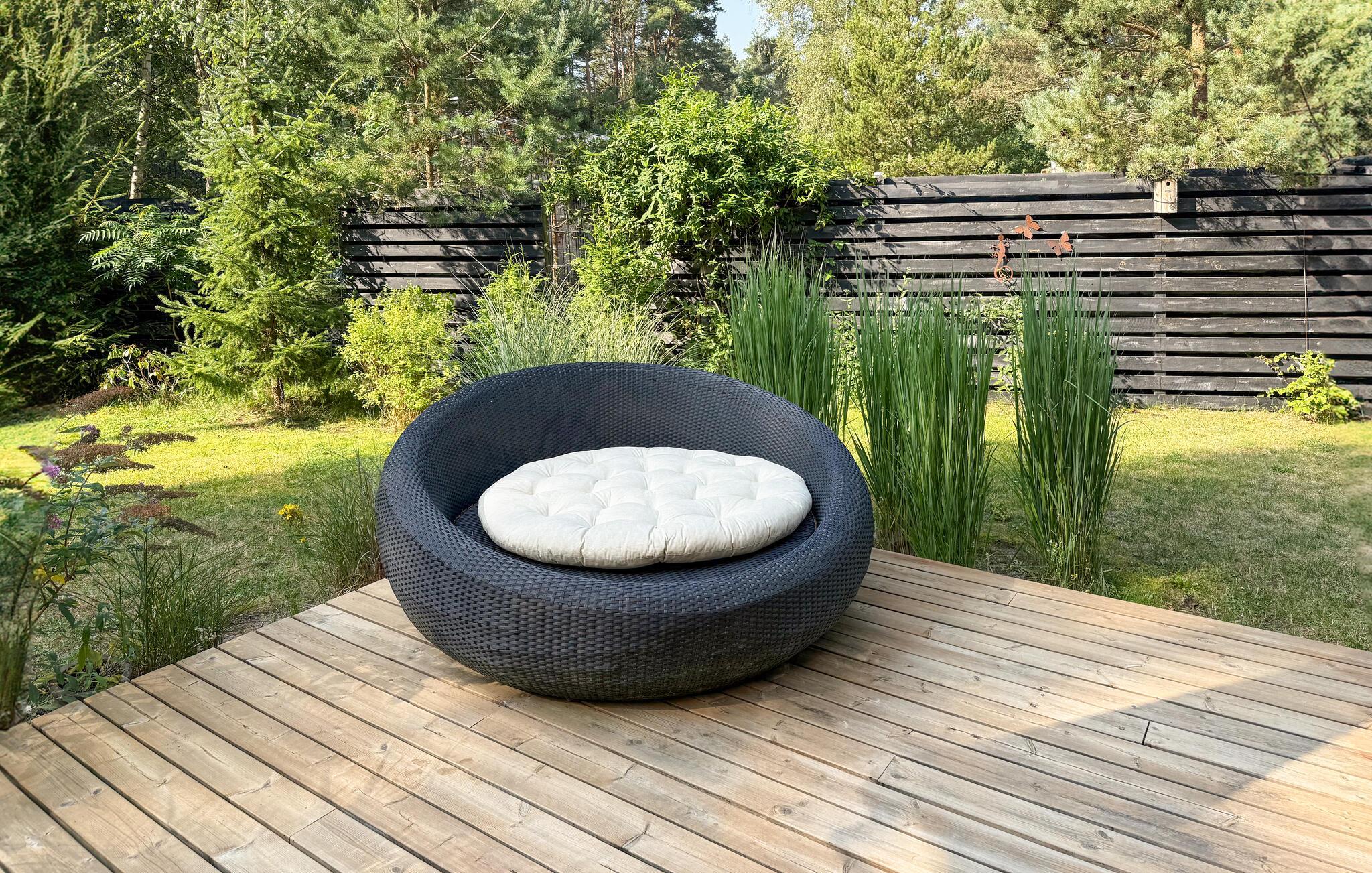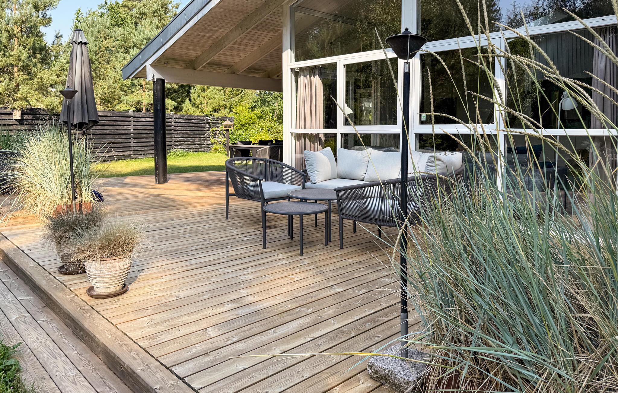 Det smukt anlagte udendørsområde indbyder hele familien til ophold i den friske luft. Se børnene lege, mens I lader sjælen finde ro i de komfortable havemøbler, og tilbered lækre retter på grillen.