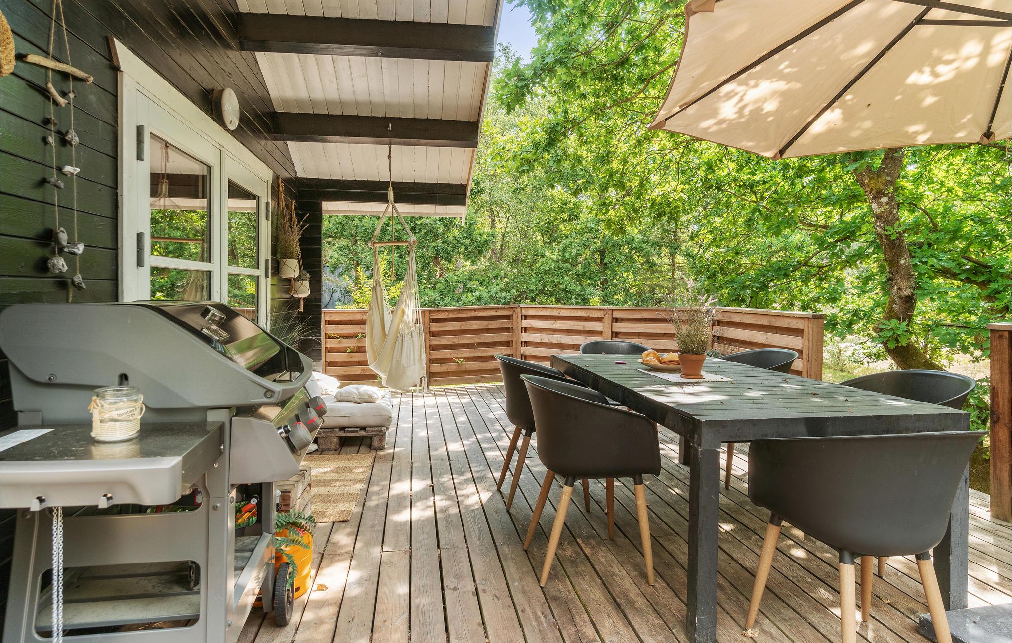 Dette indbydende træhus byder på et fredeligt udendørsområde med åben terrasse til solbadning samt et finsk vildmarksbad til rendyrket ferieafslapning. Børnene og jeres hund kan lege og boltre sig i den store have. Selve feriehuset byder på mange hyggekroge til afslapning mellem badeture og udflugter. I kommer til at sove skønt i de komfortable soveværelser.