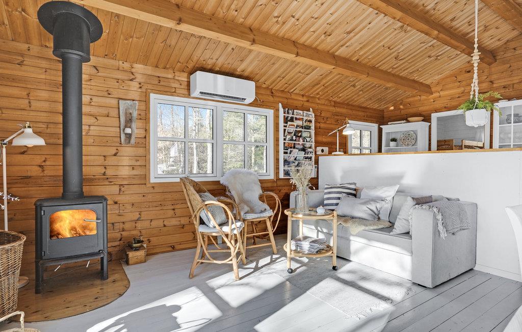 Nyd en afslappende ferie i et charmerende træhus med finsk vildmarksbad og stor have i naturskønne omgivelser på Djursland.