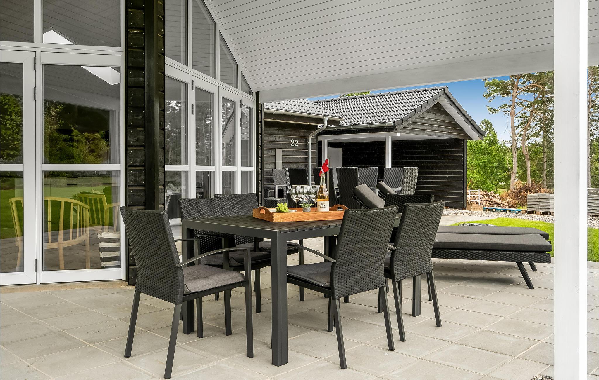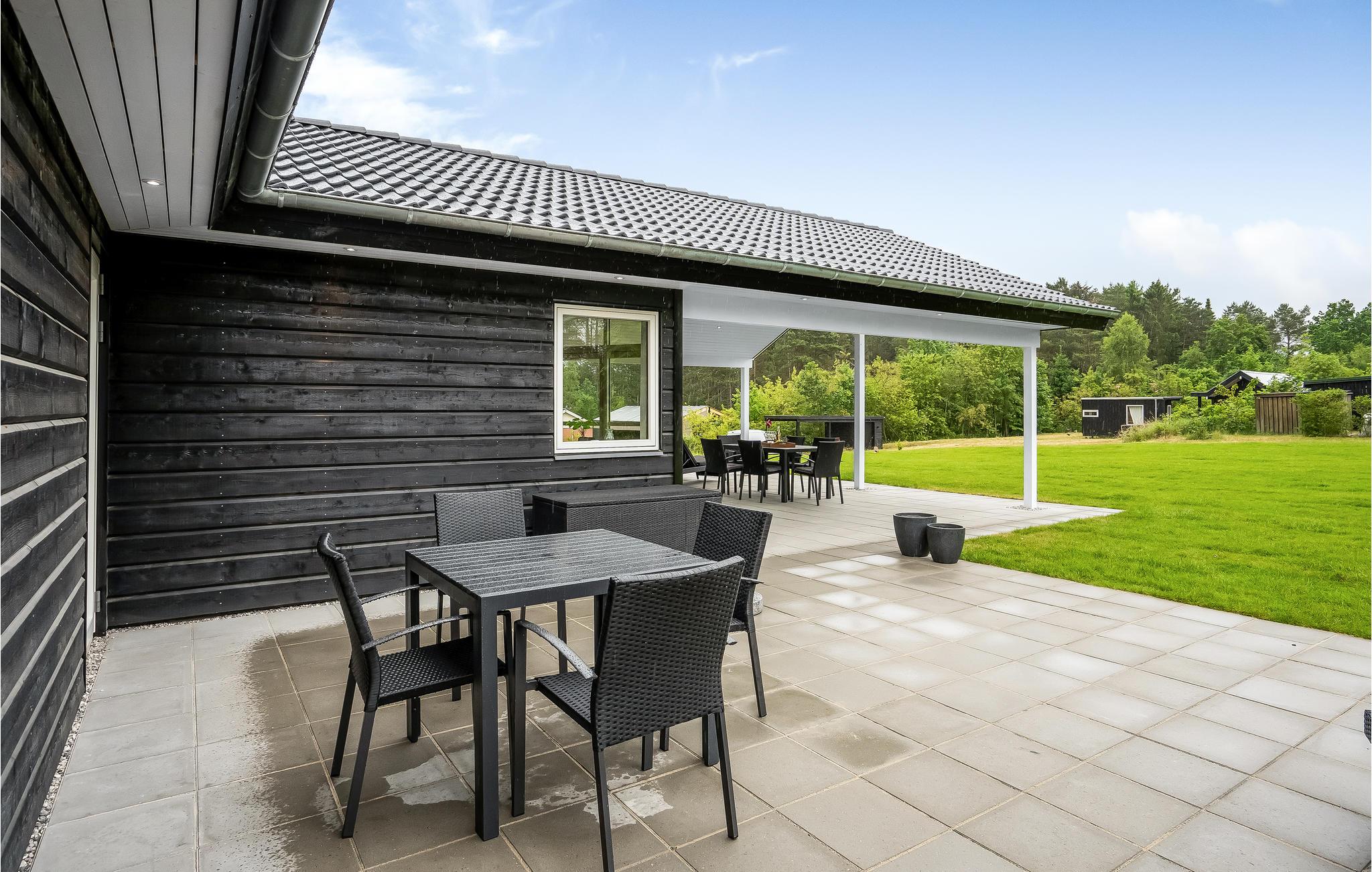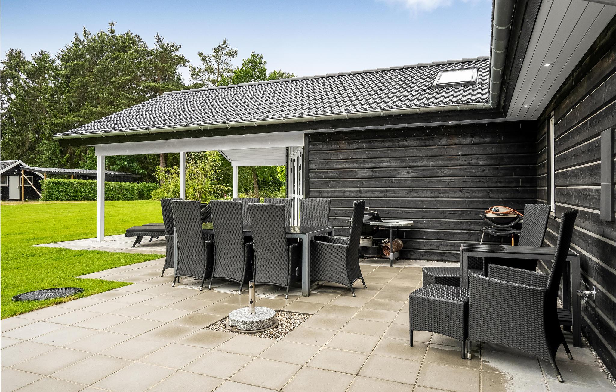Udenfor kan I gøre jer komfortable på den åbne og overdækkede terrasse og nyde delikatesser fra grillen. Der er en sandkasse til børnene.