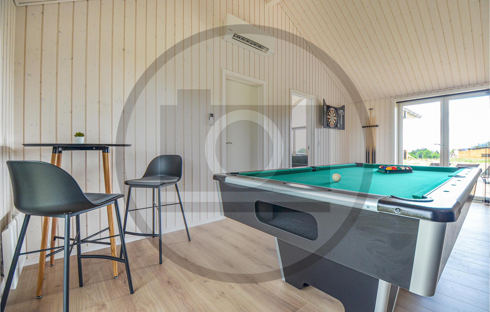 Dette moderne og rummelige feriehus byder sine gæster velkommen i Fuglslev. Op til 10 personer kan gøre sig komfortable i huset med 4 soveværelser og 2 badeværelser. Der er også 2 sovepladser på hemsen. Ud over en sauna, der er fantastisk til afslapning, tilbyder huset også et aktivitetsrum med bordtennis og billard.
