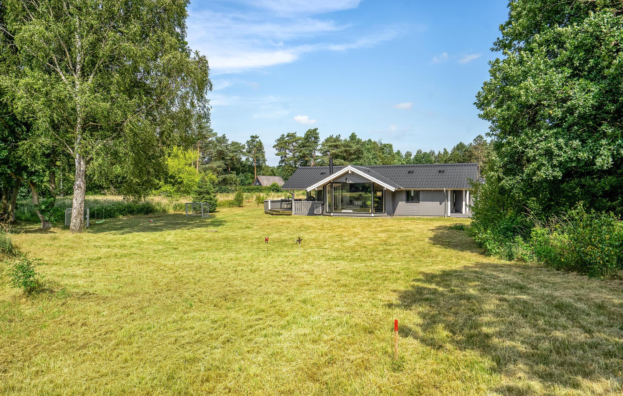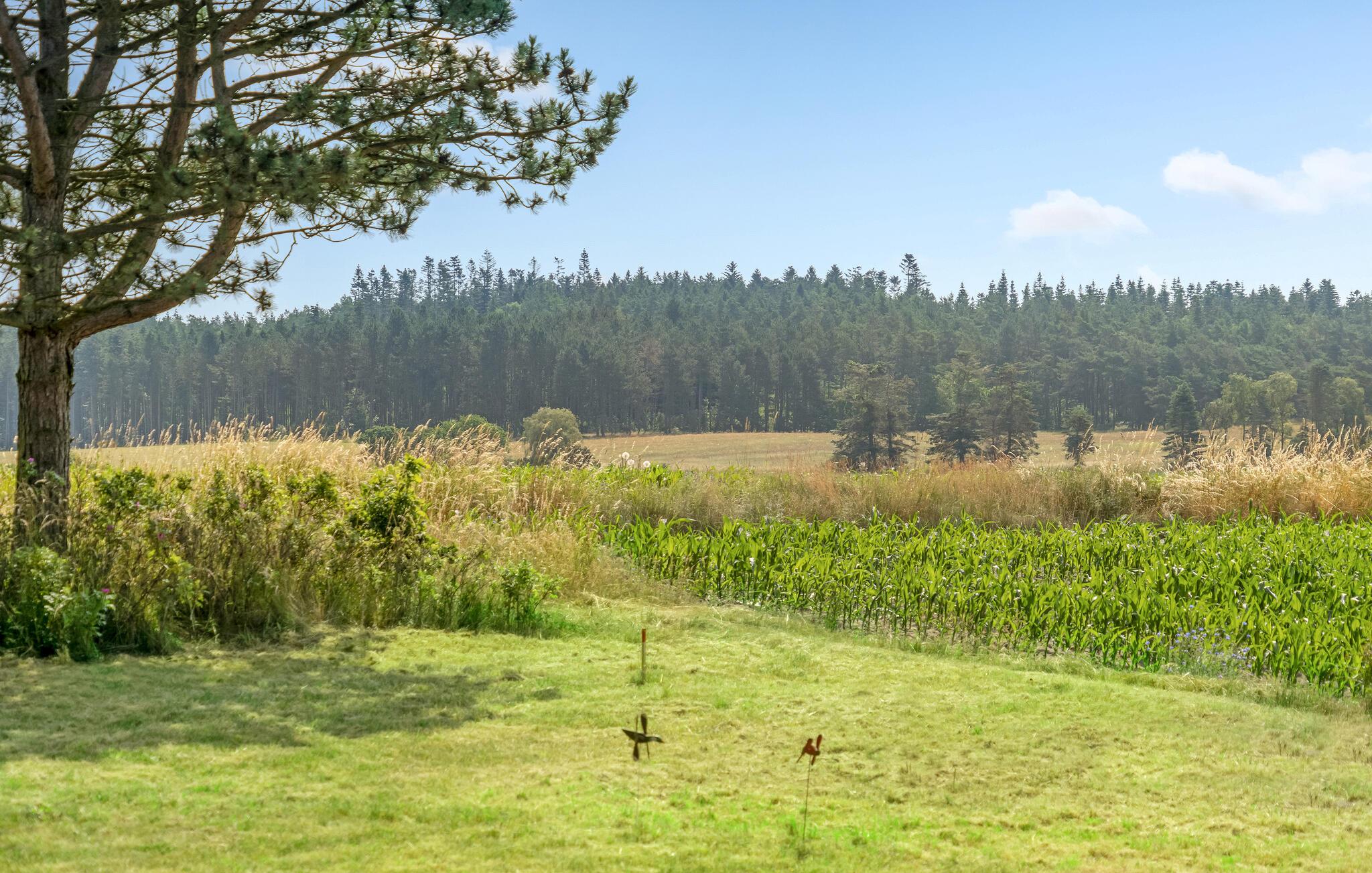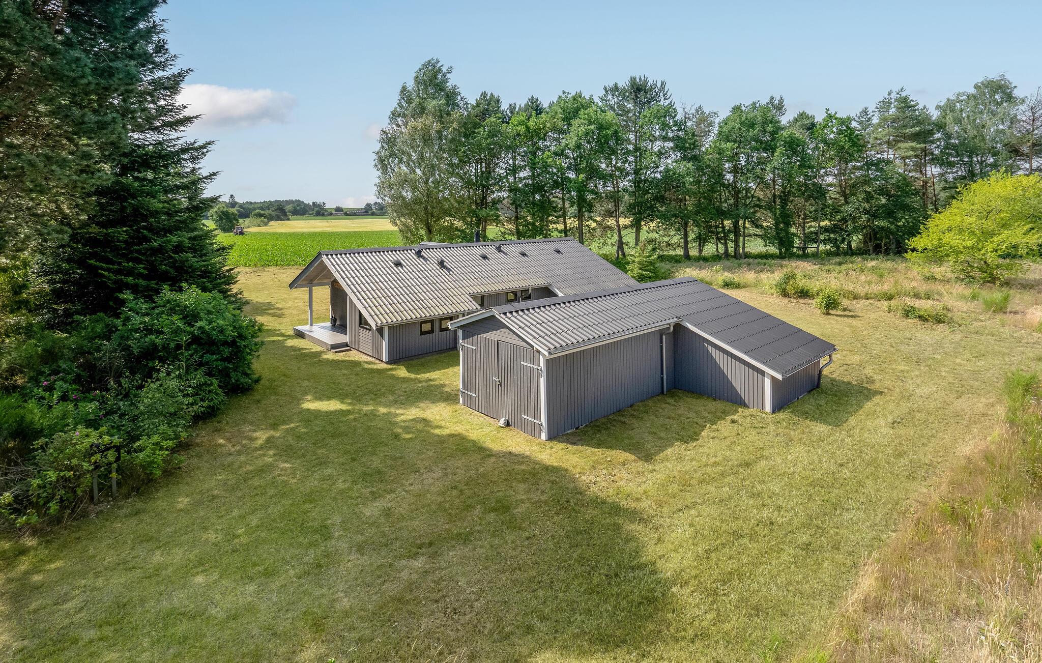 Nyd en fredelig ferie i et moderne sommerhus med smuk udsigt til marker og stor have i Ebeltoft.