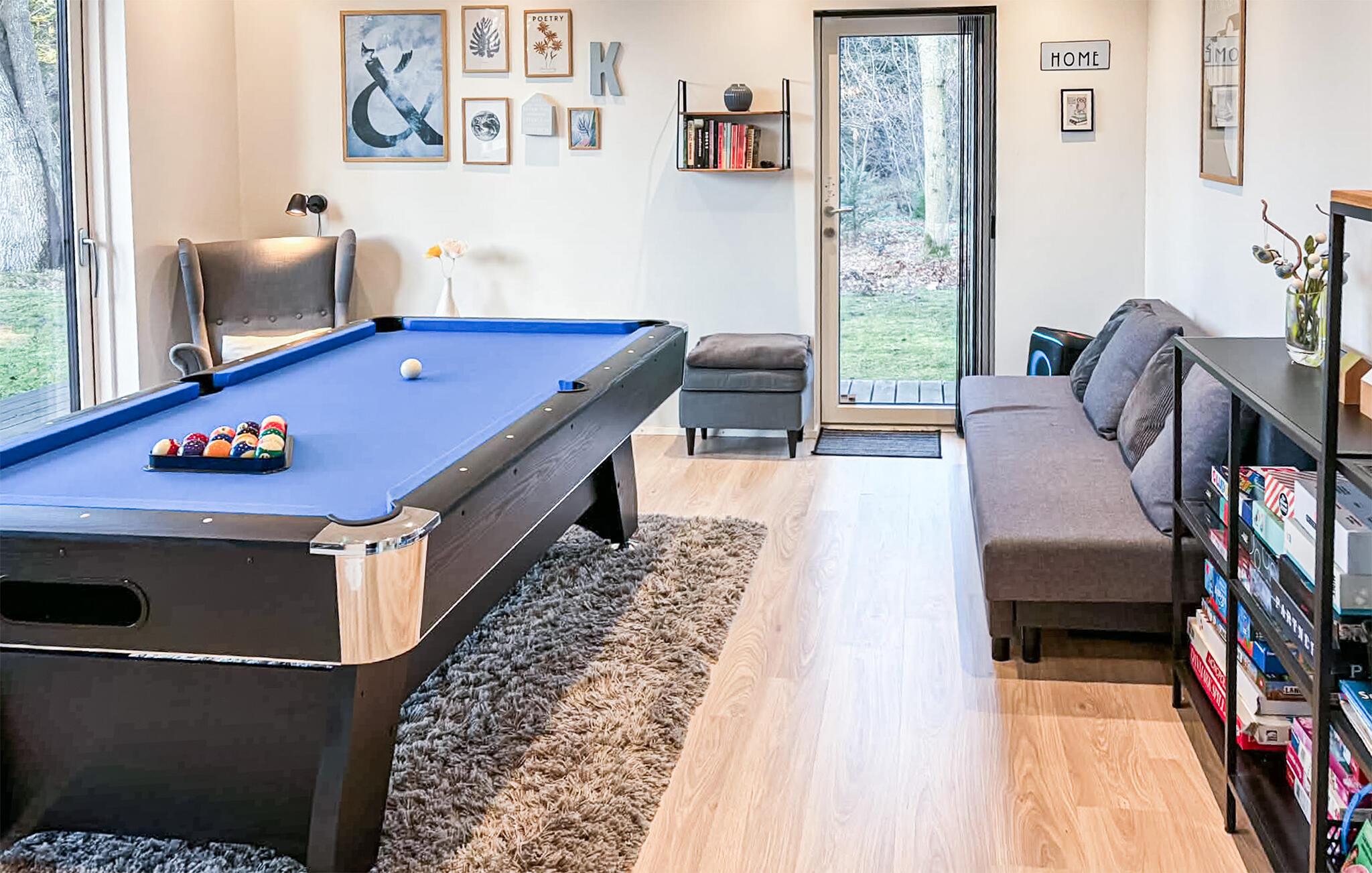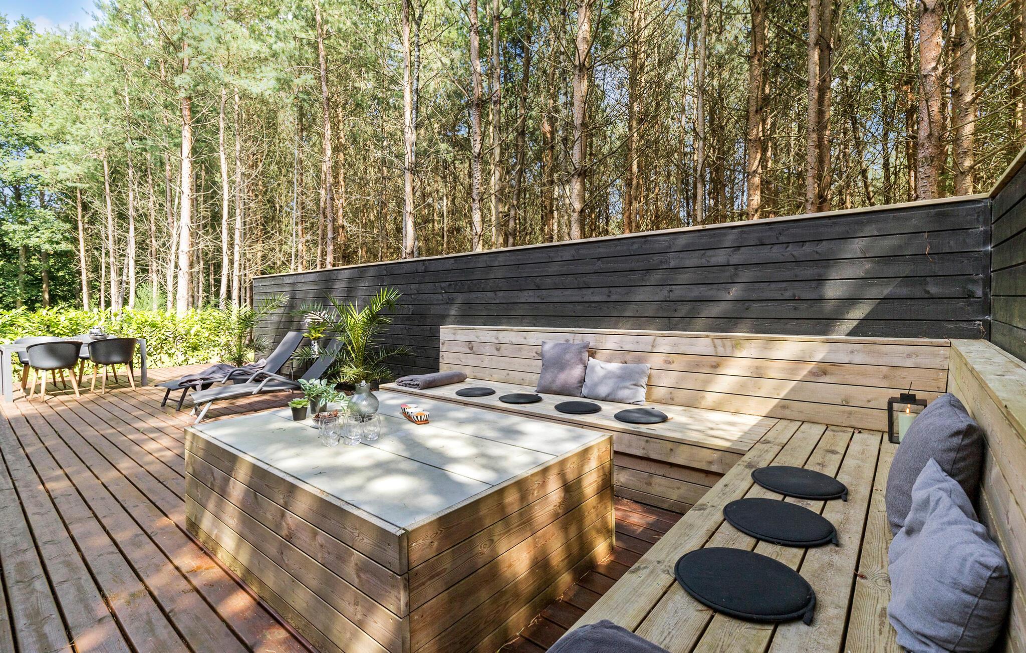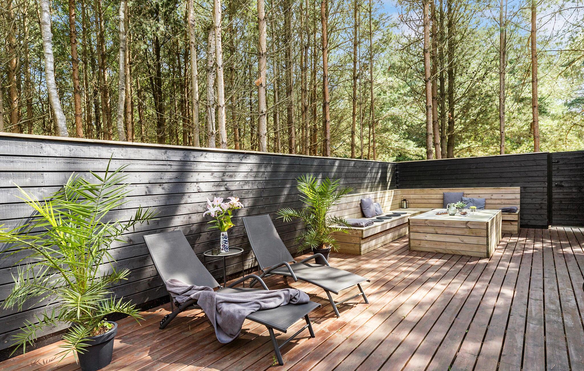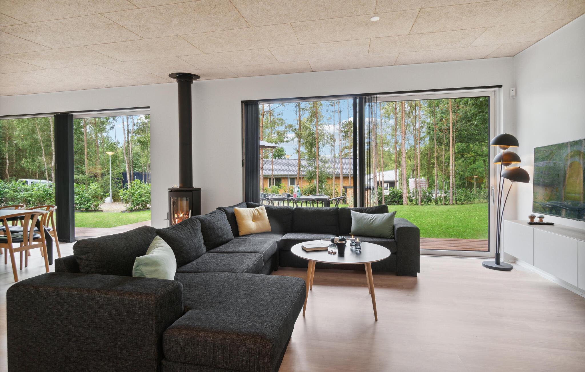 Moderne feriehus i Fuglslev med wellness, stor naturgrund og aktiviteter for hele familien.