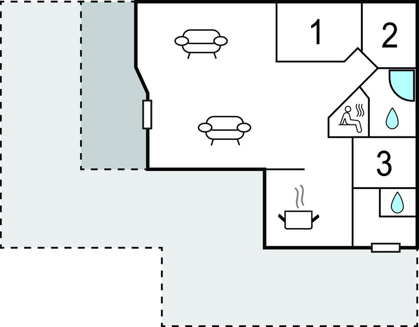 Opholdsstue - 2 Sovepladser. (Enkeltseng(e)). 1 Soveplads. (Etageseng(e)).