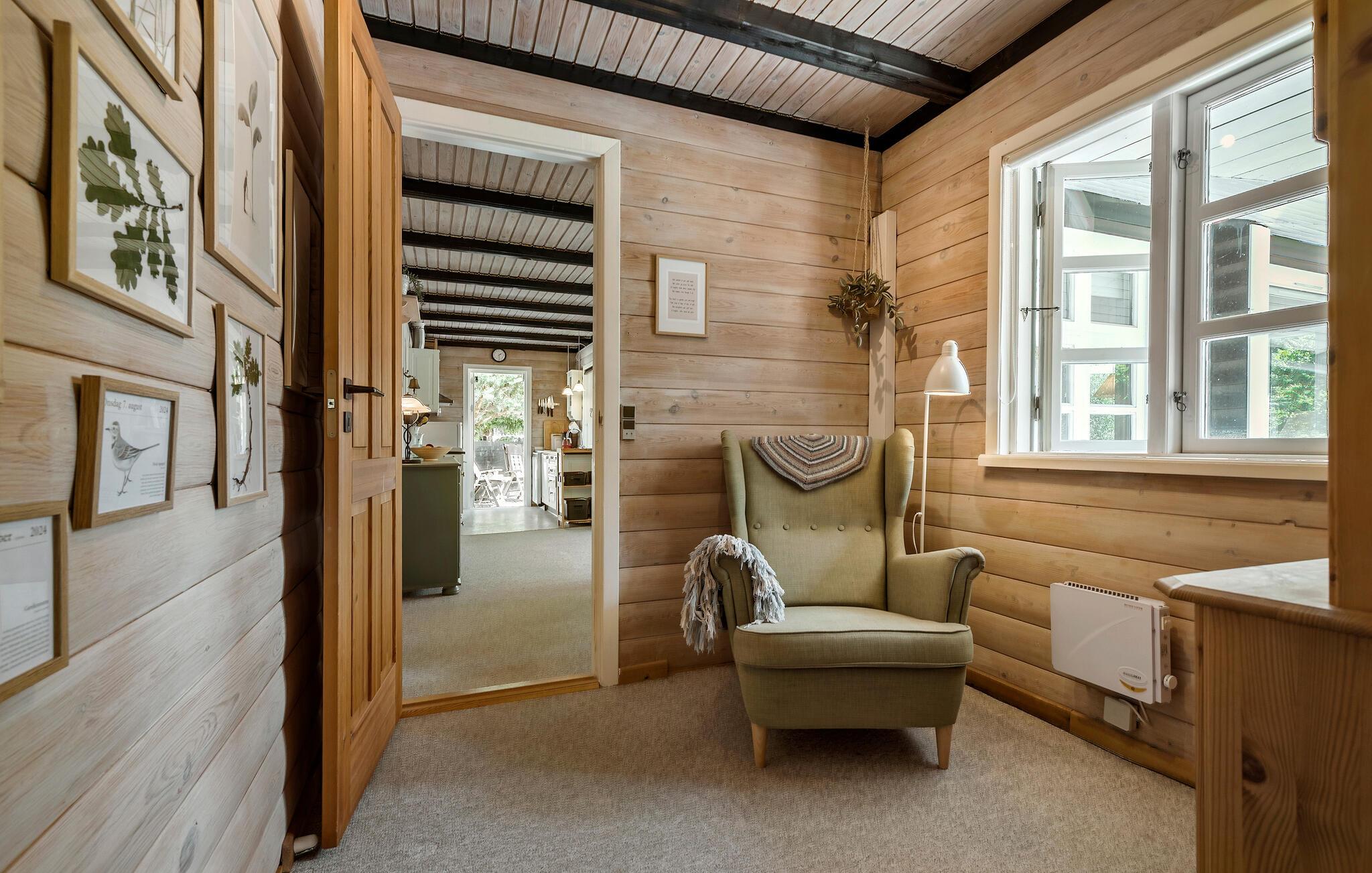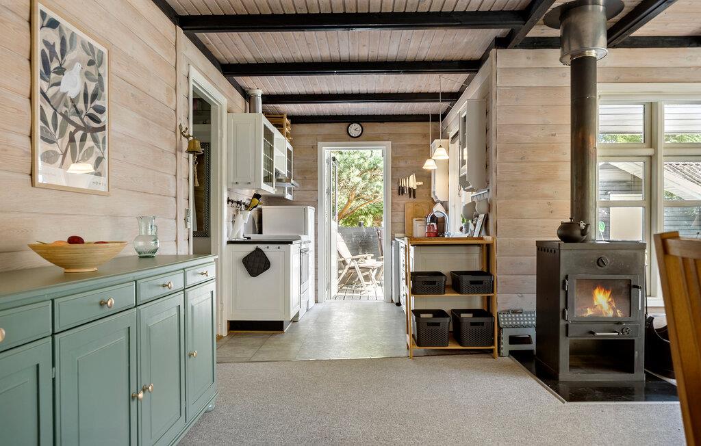 Velkommen til en stor, dejlig have og en herlig base til jeres ferie på Djursland. Træd indenfor i huset, som er hyggeligt og rummeligt. De store vinduer i stuen giver en behagelig udsigt til den grønne have. Ved spisebordet kan I nyde lækre måltider og planlægge jeres aktiviteter. Efter en lang dag udendørs kan I tænde brændeovnen og lægge jeres trætte fødder op på de behagelige lænestole.