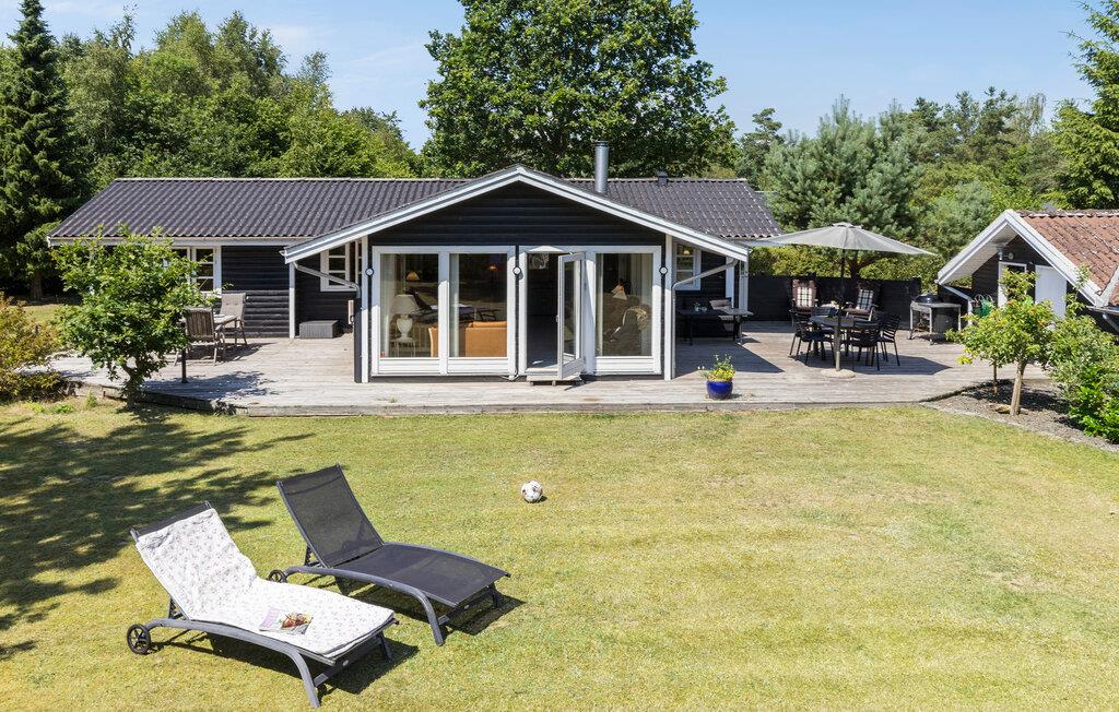 På den indhegnede grund kan børnene legende udforske naturen, mens I læner jer tilbage i liggestolene eller snakker i skyggen på den dejlige terrasse og forbereder en grillmiddag.