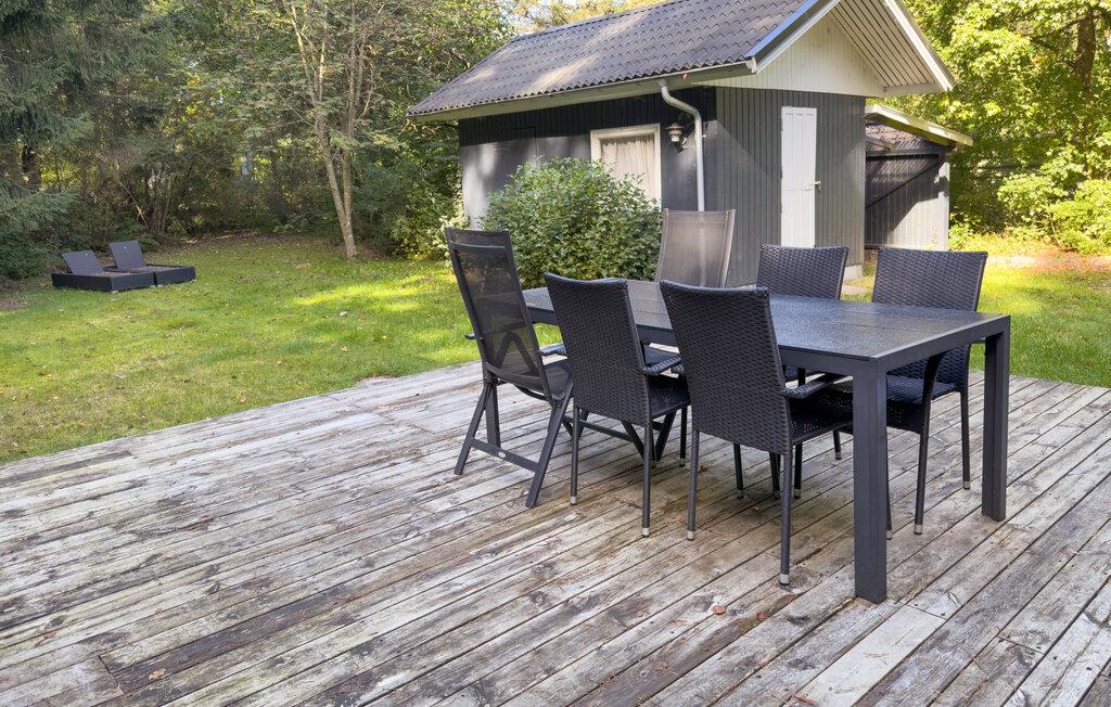 Hyggeligt sommerhus i rolige naturomgivelser nær Ebeltoft med stor terrasse og moderne faciliteter.