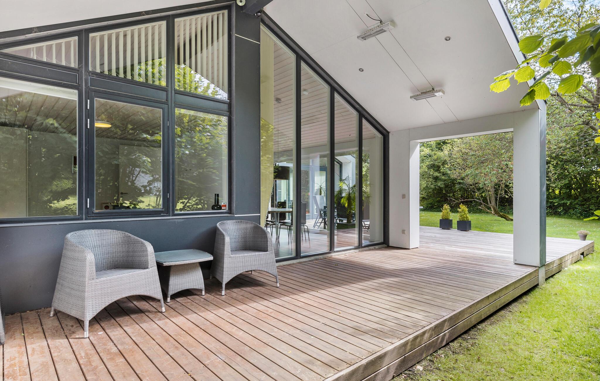 Når solen er fremme, kan I trække ud på den rummelige terrasse, hvor I også kan grille på de lune sommeraftener. Skal I gøre noget godt for jer selv, er det ren forkælelse at sætte sig til rette i husets sauna eller spabad.