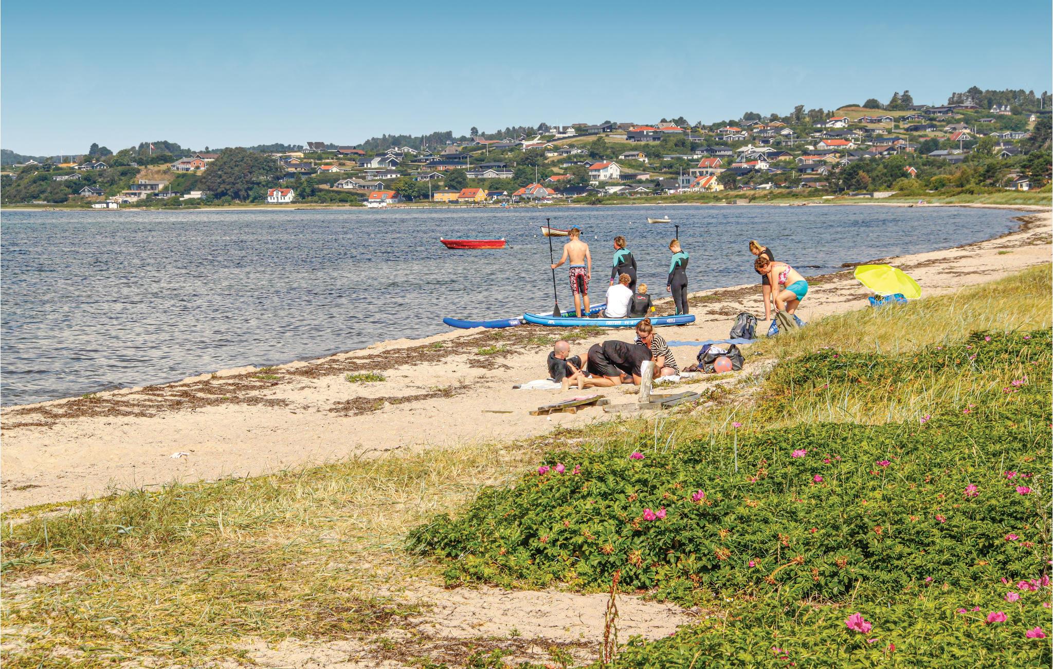 Velkommen til et skønt feriehus på næsen af Jylland, nemlig Djursland. Huset ligger for enden af en stille sommerhusvej ud mod åbne arealer, så I kan nyde naturen og den dejlige ro og fred i fulde drag, når I holder ferie her. Feriehuset et godt indrettet med et stort køkken/alrum/stueareal, hvor brændeovnen skaber en ekstra hyggelig stemning og lyset strømmer ind gennem de store vinduespartier. De tre rummelige soveværelser er udstyret med gode dobbeltsenge og på hemsen findes to yderligere sovepladser på skummadrasser. I badeværelset giver spabadet og saunaen jer velvære efter en dejlig dag med mange oplevelser. På terrassen kan I nyde ferien og grille lækre sommermiddage mens børnene leger i den store have.