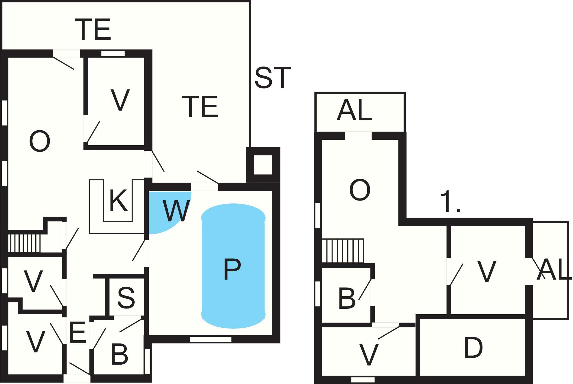 Huset råder over alle moderne faciliteter. 2 stuer; en opholdsstue med brændeovn samt en spisestue kombineret med køkken fra 2015, 5 soveværelser og 2 badeværelser. Desuden rummer huset et poolrum som udover swimmingpoolen også indeholder husets spabad. Fra poolrummet er der direkte adgang til terrassen.