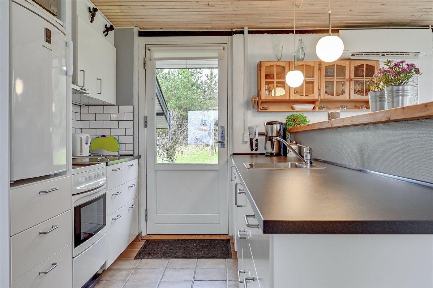 Køkkenet er udstyret med 1 køleskab. Der er 4 keramiske kogeplader, varmluftovn, mikrobølgeovn samt opvaskemaskine.