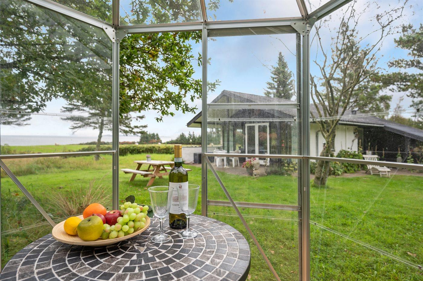 Ferieboligen er beliggende på en 3500 m² stor naturgrund. Der er 200 m til fjorden. Nærmeste forretning er beliggende i en afstand af 3000 m. Til ferieboligen hører 10 m² terrasseareal. Desuden er der 12 m² overdækket terrasse. Der er redskabsrum. Gynge. Sandkasse. Parkering ved ferieboligen.