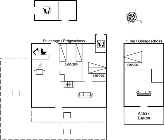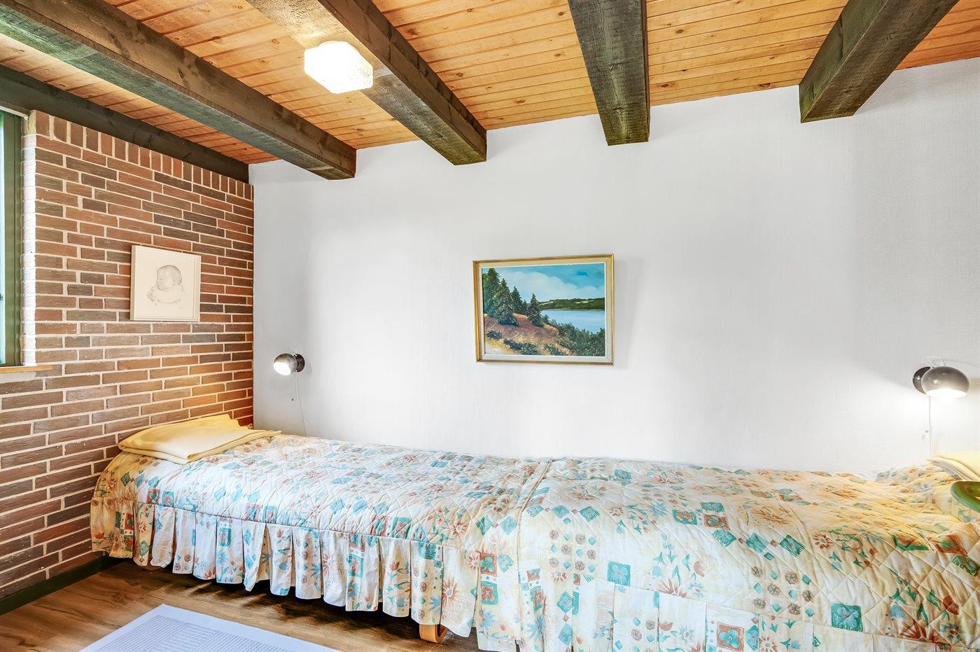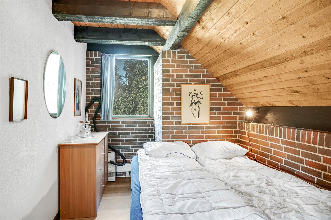 Der er i alt 3 soveværelser. Sovepladserne fordeler sig på: 4 sovepladser i dobbeltsenge. 2 sovepladser i enkeltsenge. Derudover er der 1 stk. barneseng.