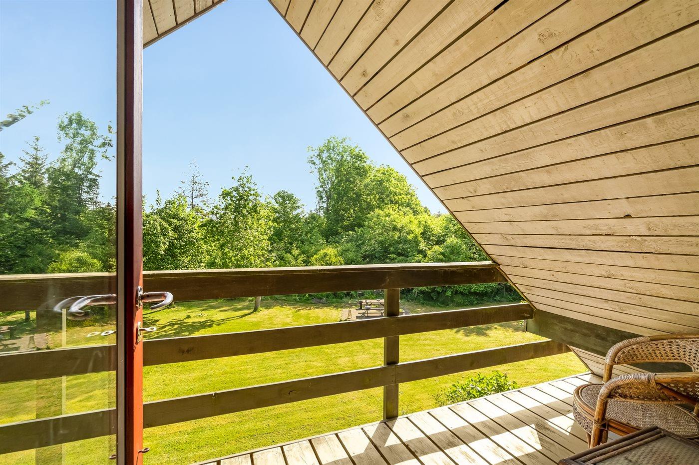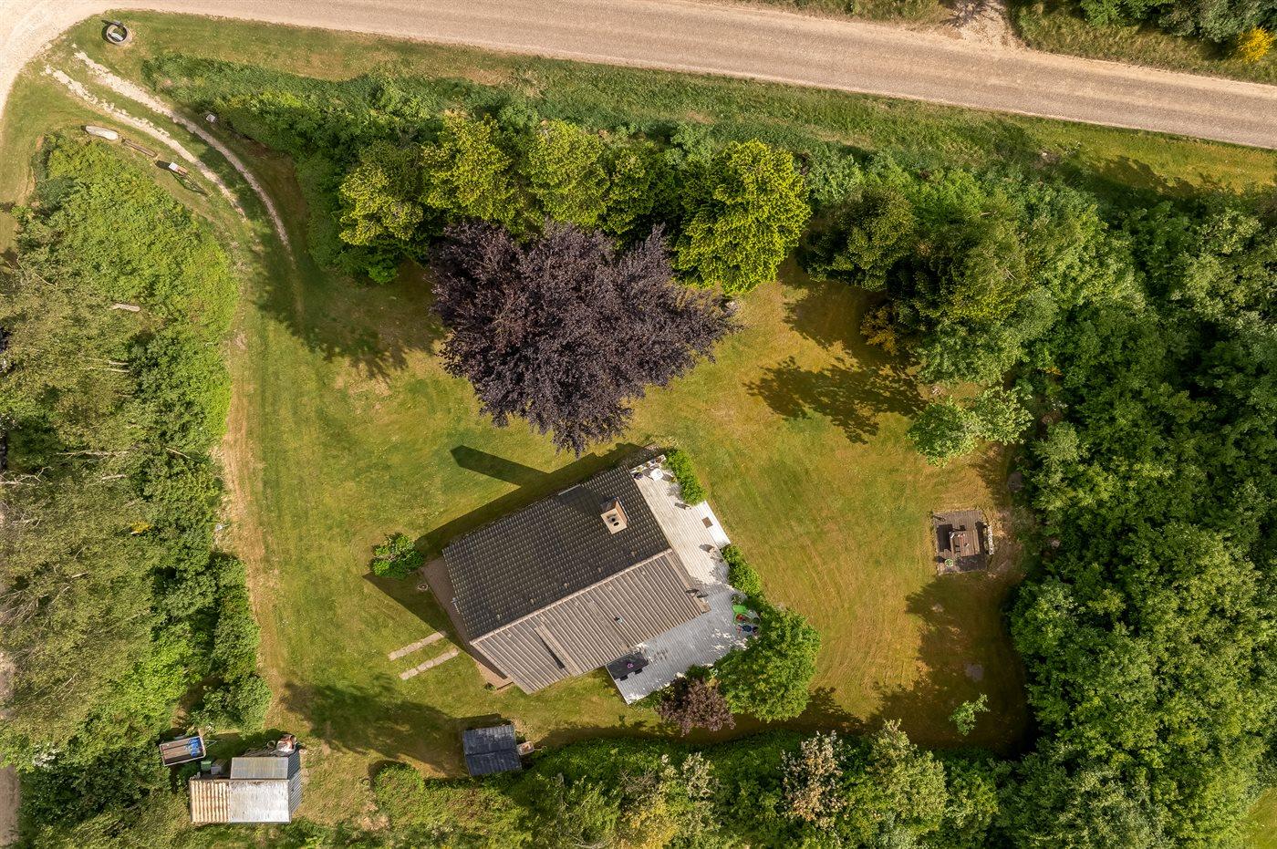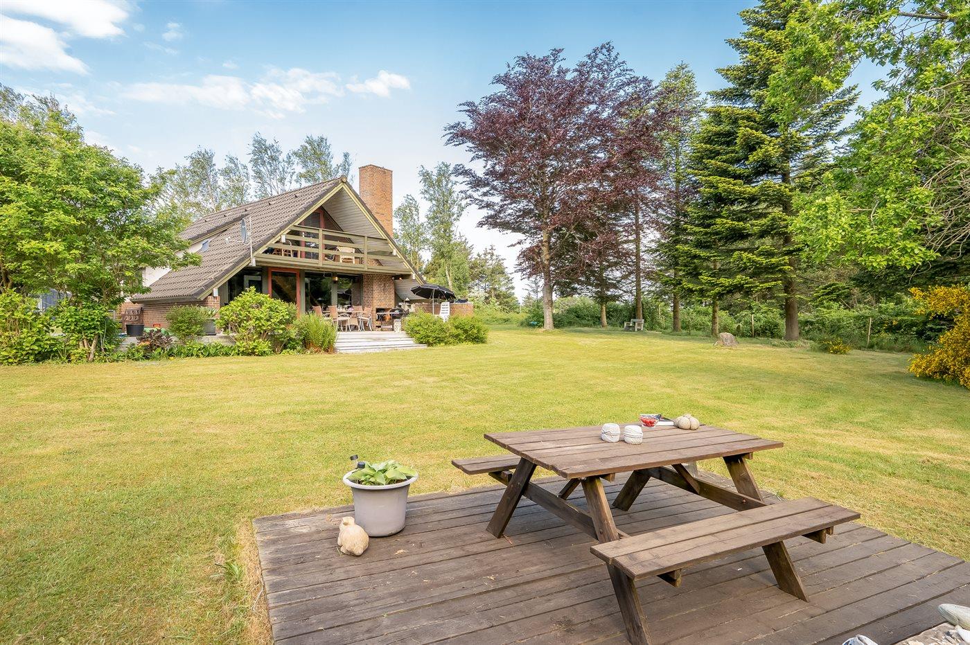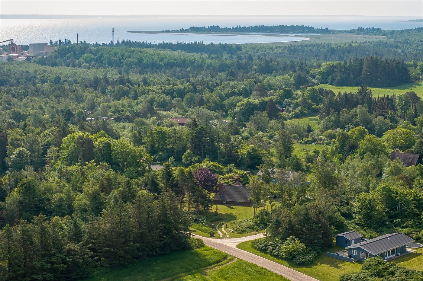 Ferieboligen er beliggende på en 3000 m² stor havegrund. Der er 200 m til fjorden. Nærmeste forretning er beliggende i en afstand af 3000 m. Til ferieboligen hører 70 m² terrasseareal. Desuden er der 12 m² overdækket terrasse. Der er redskabsrum. Gynge. Sandkasse. Parkering ved ferieboligen.