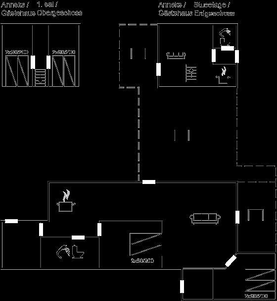 Der er i alt 4 soveværelser. Sovepladserne fordeler sig på: 8 sovepladser i enkeltsenge. 4 af disse sovepladser fordeler sig på 2 soveværelser i annekset. Derudover er der 1 stk. barneseng.