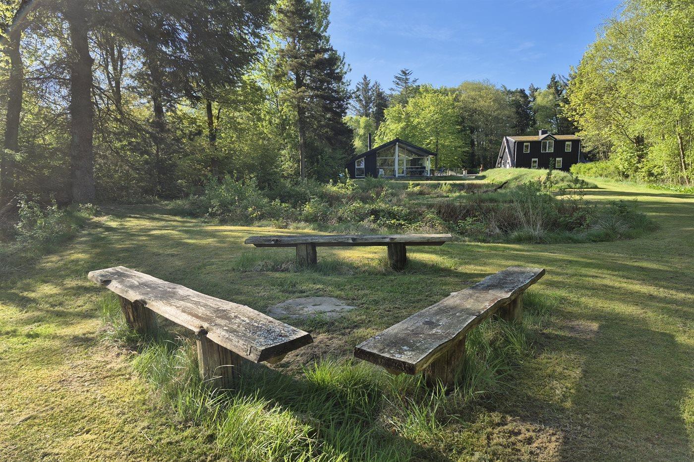 Ferieboligen er beliggende på en 9500 m² stor naturgrund. Der er 50 m til fjorden. Nærmeste forretning er beliggende i en afstand af 5000 m. Der er en golfbane i en afstand af 20000 m. Til ferieboligen hører 100 m² terrasseareal. Desuden er der 10 m² overdækket terrasse. Bålsted. Grill til rådighed. Der er installeret stik til opladning af elbil. Parkering ved ferieboligen.