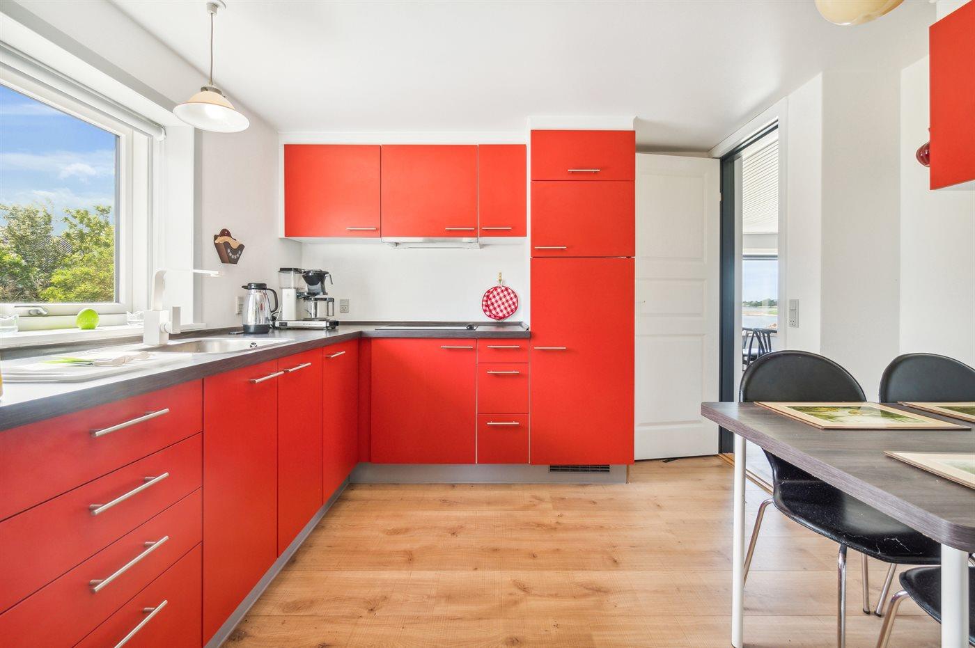 Køkkenet er udstyret med 1 køleskab. Der er 4 induktionskogeplader, varmluftovn samt opvaskemaskine.