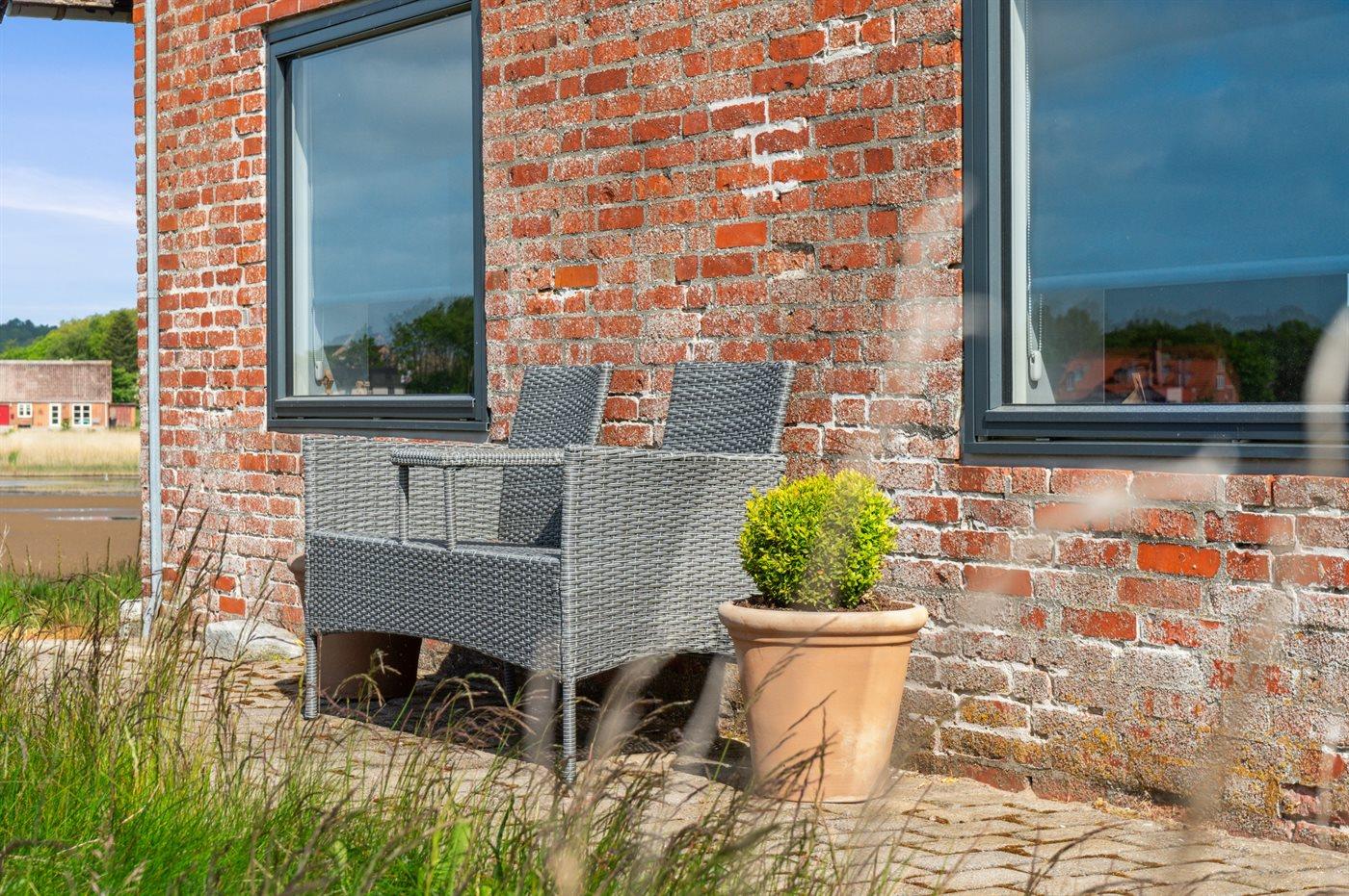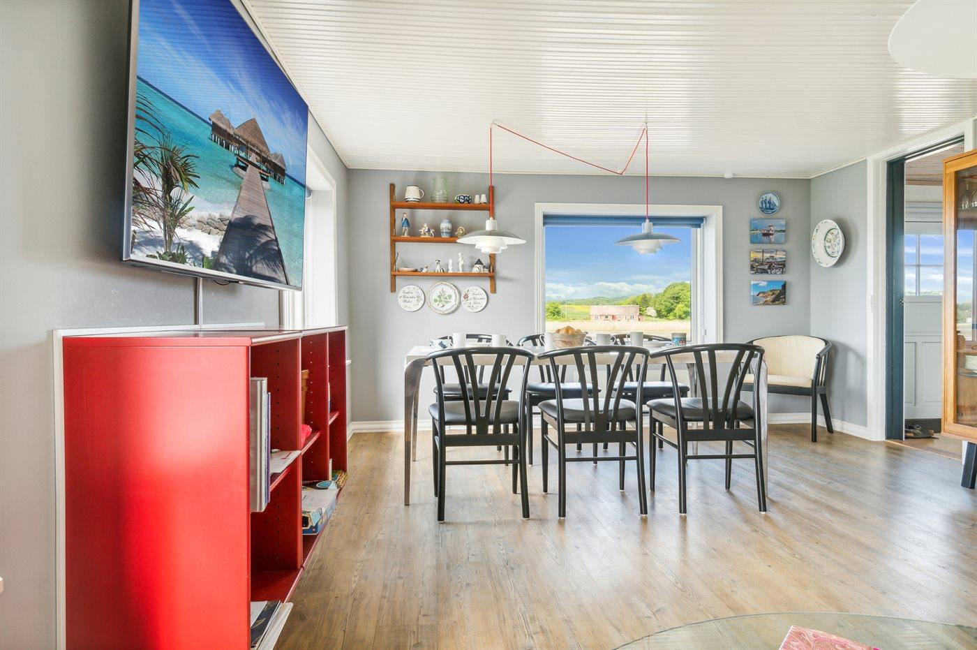 Ferieboligen er beliggende på en 800 m² stor naturgrund. Der er 150 m til fjorden. Nærmeste forretning er beliggende i en afstand af 2500 m. Der er en golfbane i en afstand af 15000 m. Til ferieboligen hører åbent terrasseareal. Desuden er der overdækket terrasse. Grill til rådighed. Parkering ved ferieboligen.