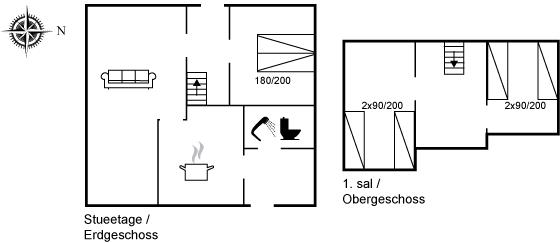 Der er i alt 3 soveværelser. Sovepladserne fordeler sig på: 2 sovepladser i dobbeltseng. 4 sovepladser i enkeltsenge.