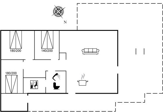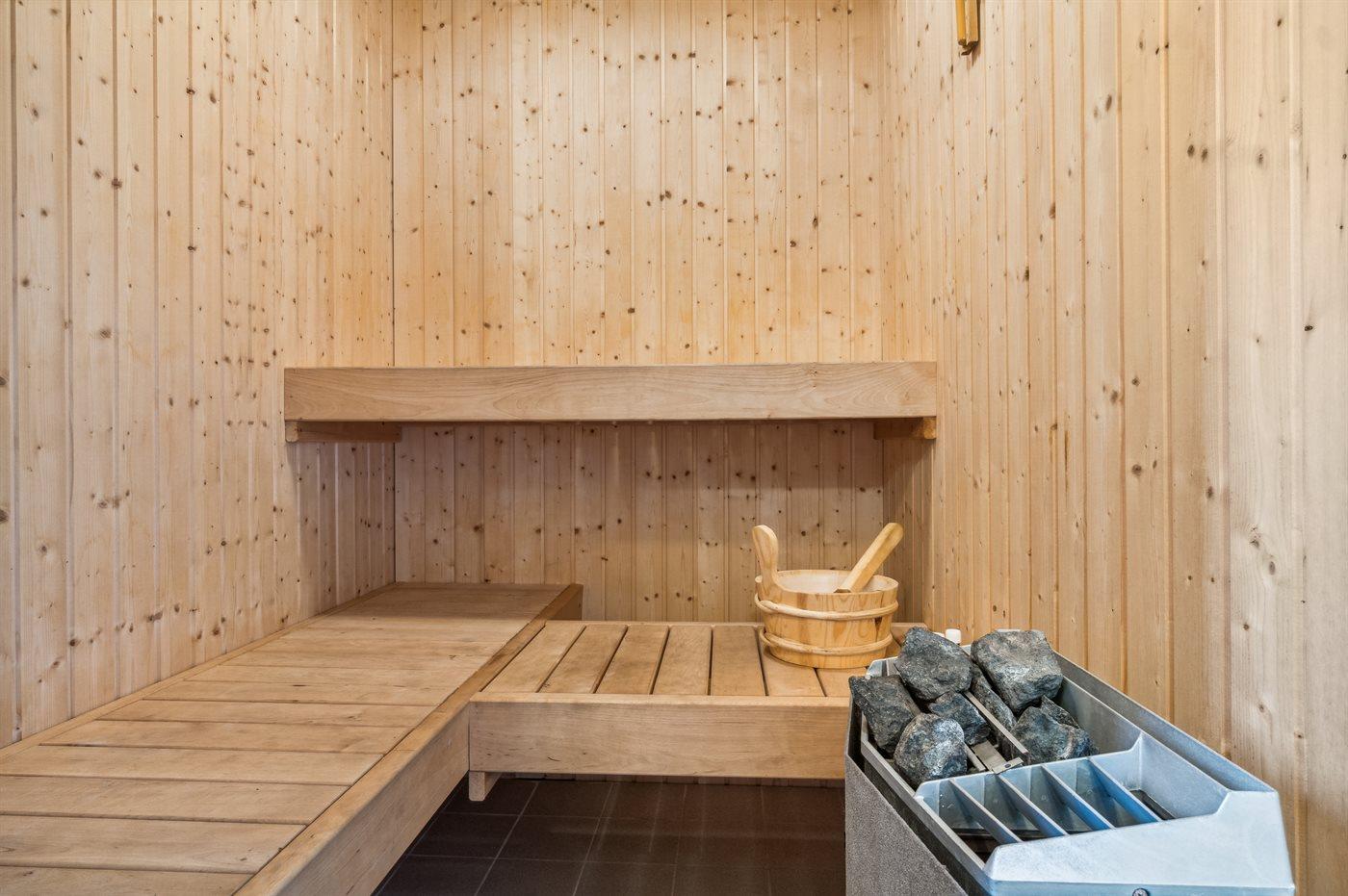Der er 1 badeværelse med bruseniche og 1 toilet. I saunaen er der mulighed for afslapning.