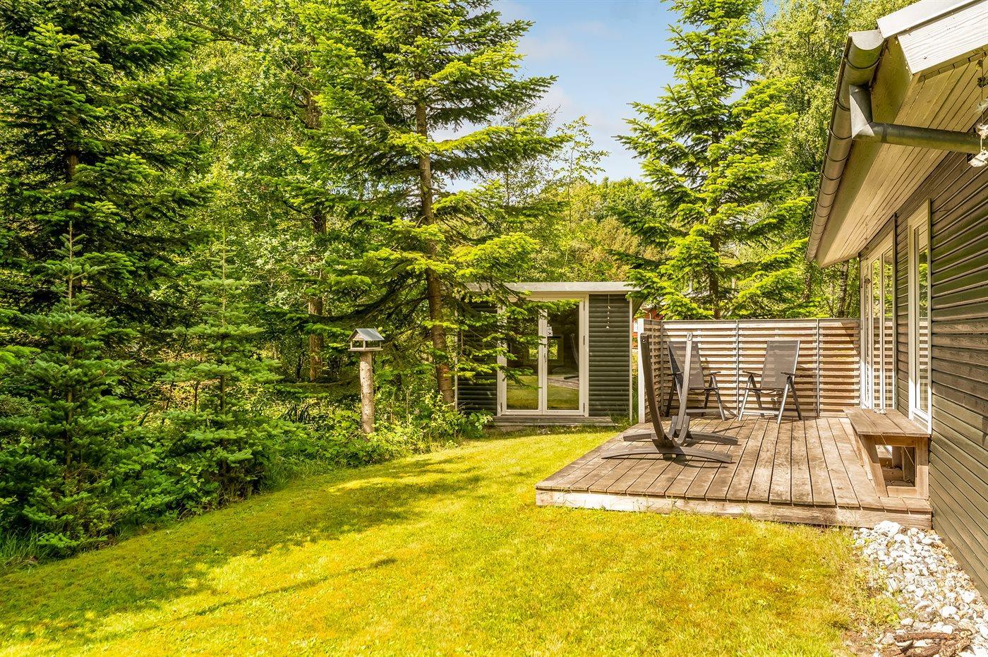 Ferieboligen er beliggende på en 3000 m² stor naturgrund. Der er 200 m til fjorden. Nærmeste forretning er beliggende i en afstand af 4000 m. Til ferieboligen hører åbent terrasseareal. Parkering ved ferieboligen.