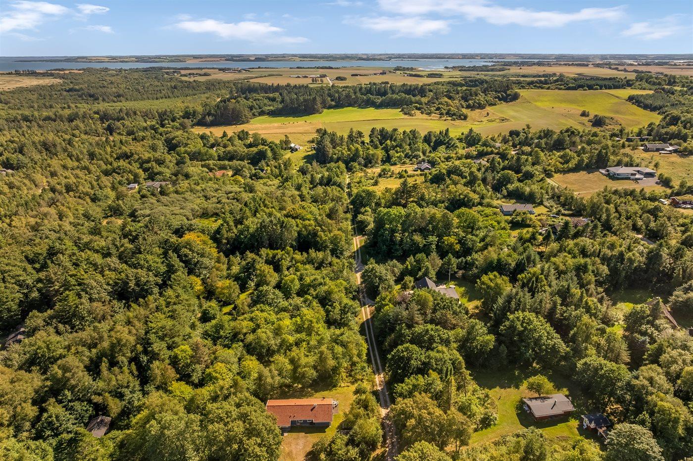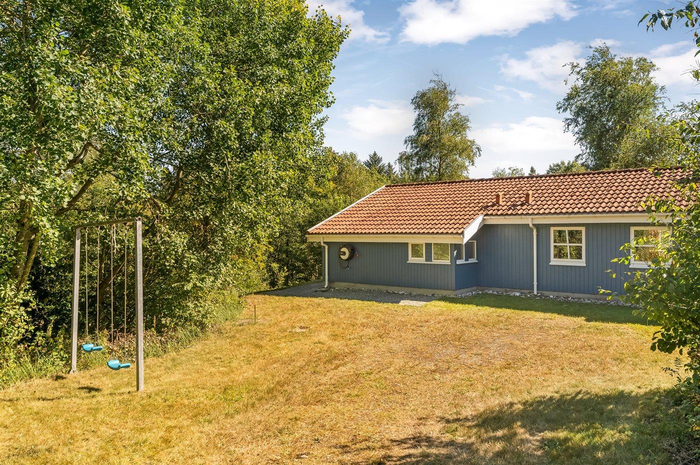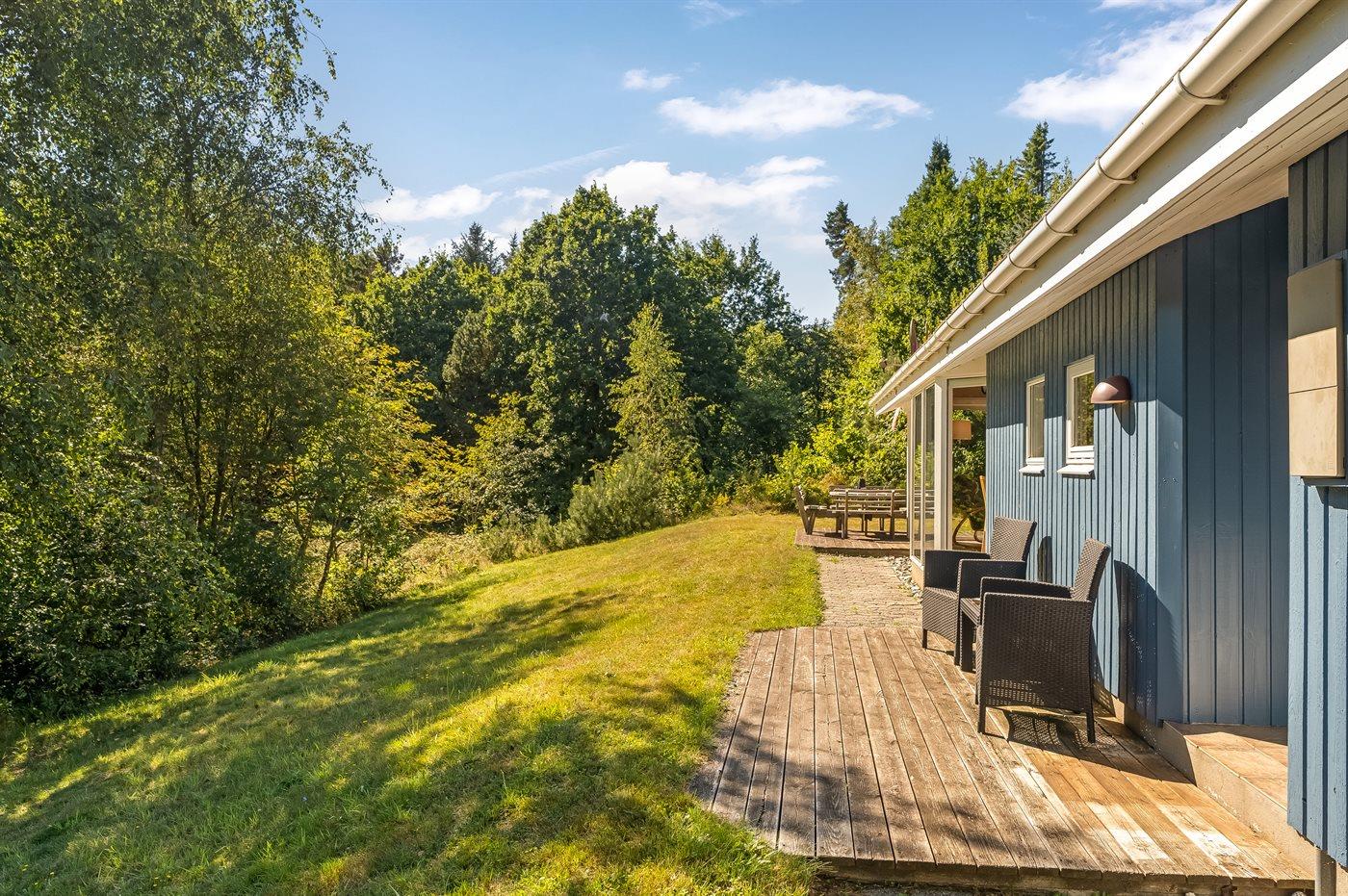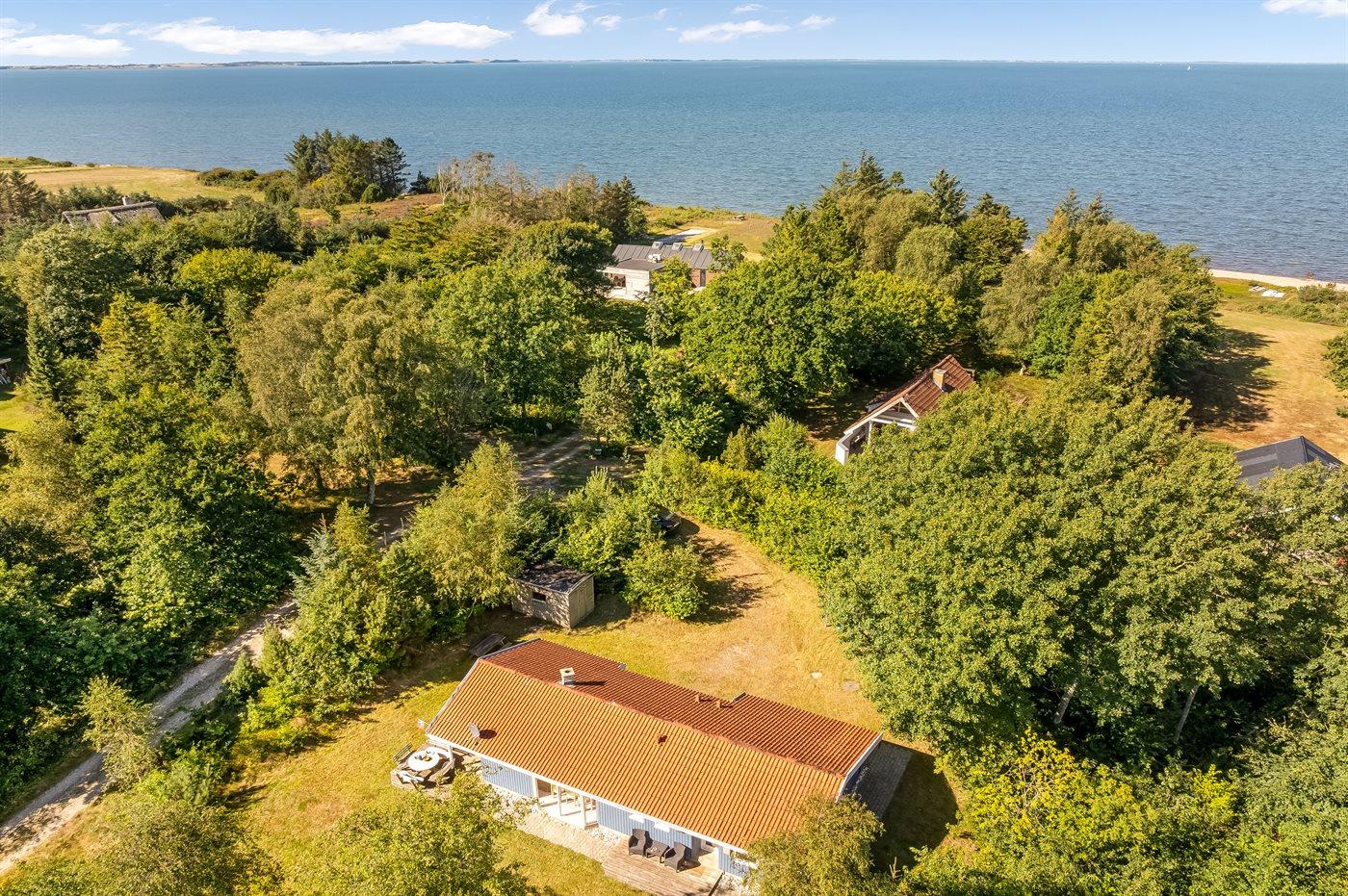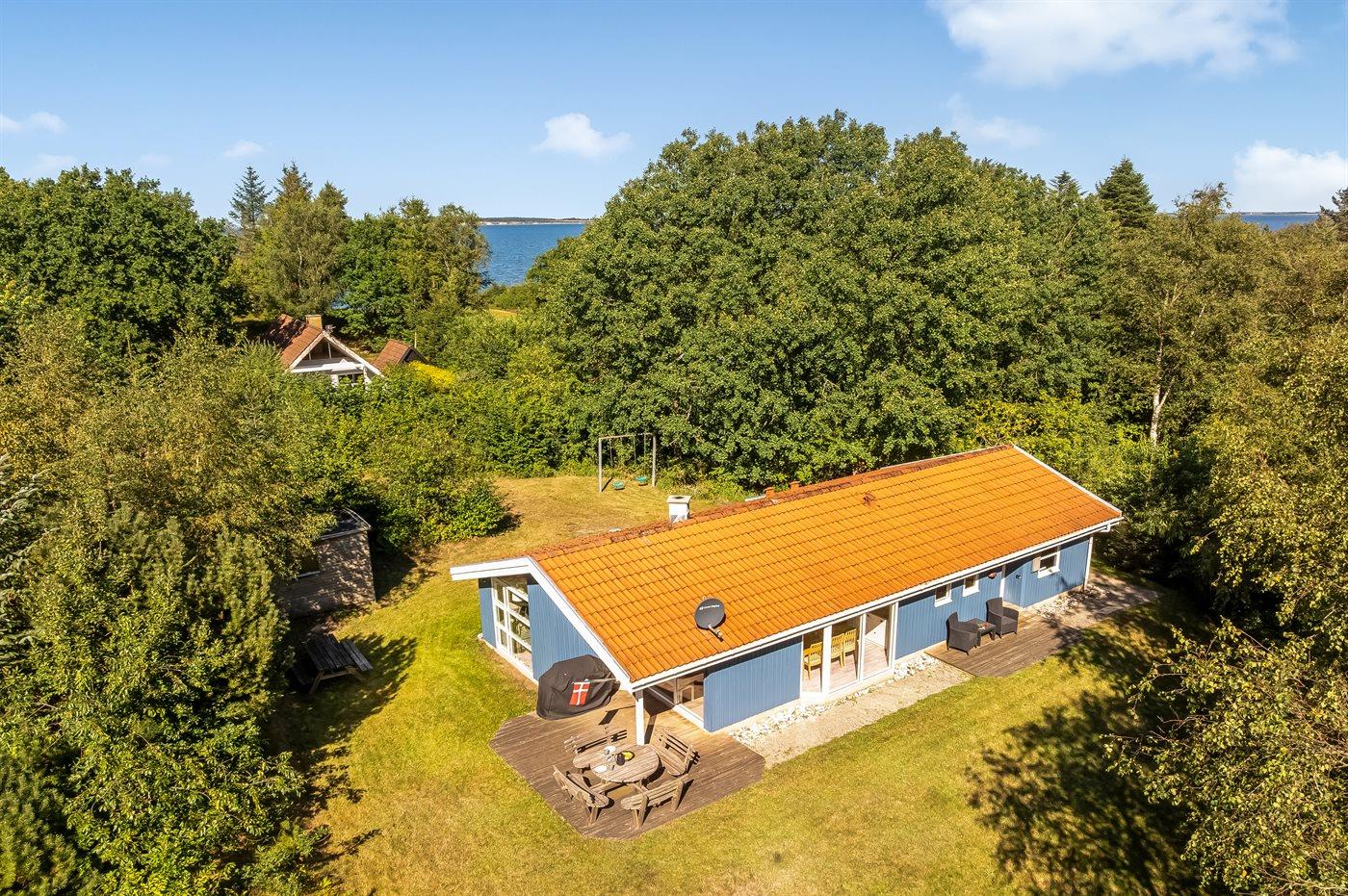 Ferieboligen er beliggende på en 2912 m² stor grund i skov/plantage. Der er 150 m til fjorden. Der er en badebro i nærheden. Nærmeste forretning er beliggende i en afstand af 5000 m. Til ferieboligen hører åbent terrasseareal. Desuden er der overdækket terrasse. Gynge. Grill til rådighed. Parkering ved ferieboligen.
