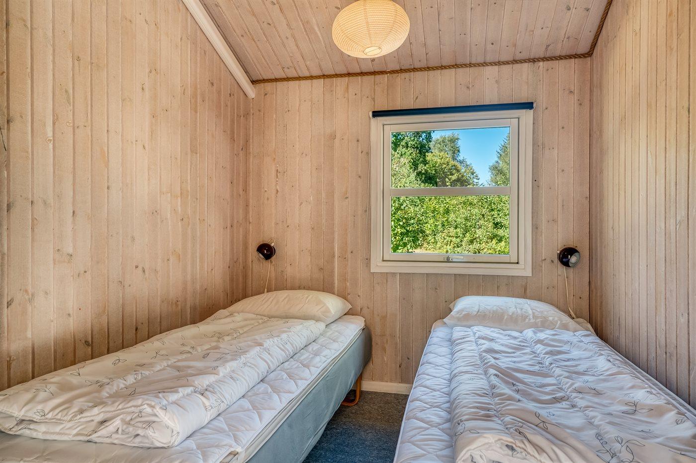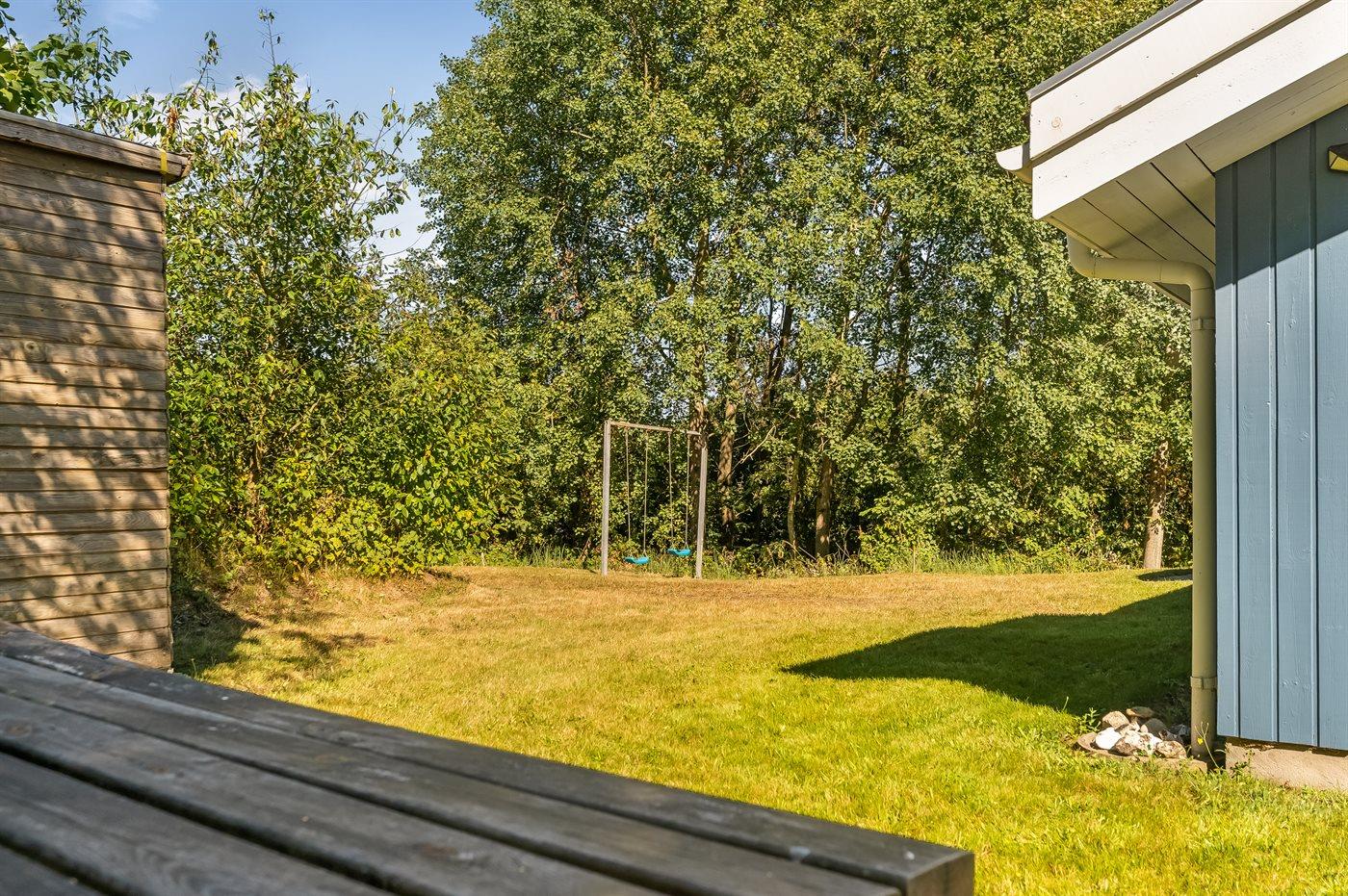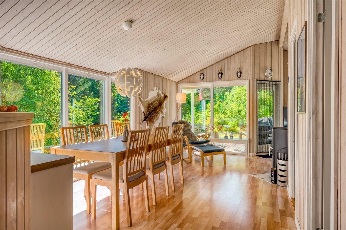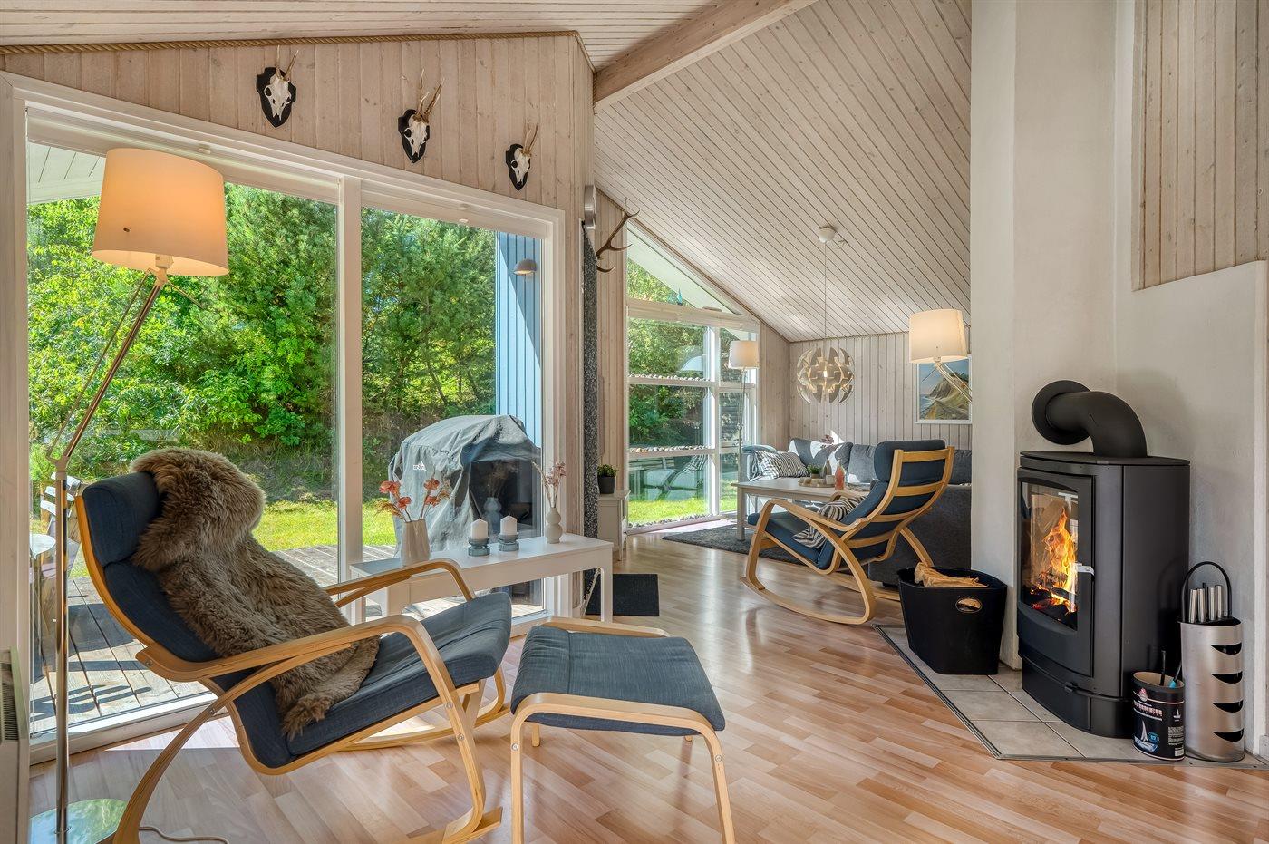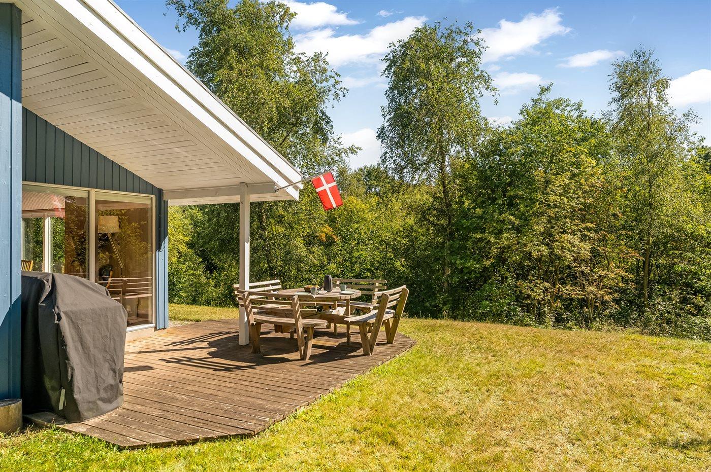 Ferieboligen er beliggende på en 2912 m² stor grund i skov/plantage. Der er 150 m til fjorden. Der er en badebro i nærheden. Nærmeste forretning er beliggende i en afstand af 5000 m. Til ferieboligen hører åbent terrasseareal. Desuden er der overdækket terrasse. Gynge. Grill til rådighed. Parkering ved ferieboligen.