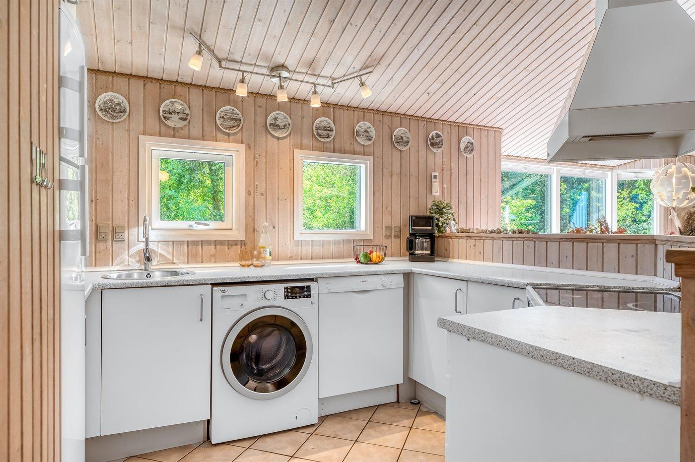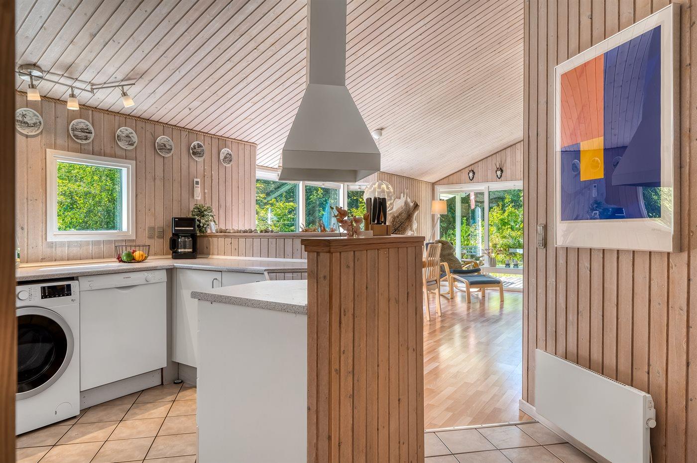 Køkkenet er udstyret med 1 køleskab. Der er 4 keramiske kogeplader, varmluftovn, mikrobølgeovn, Airfryer samt opvaskemaskine.