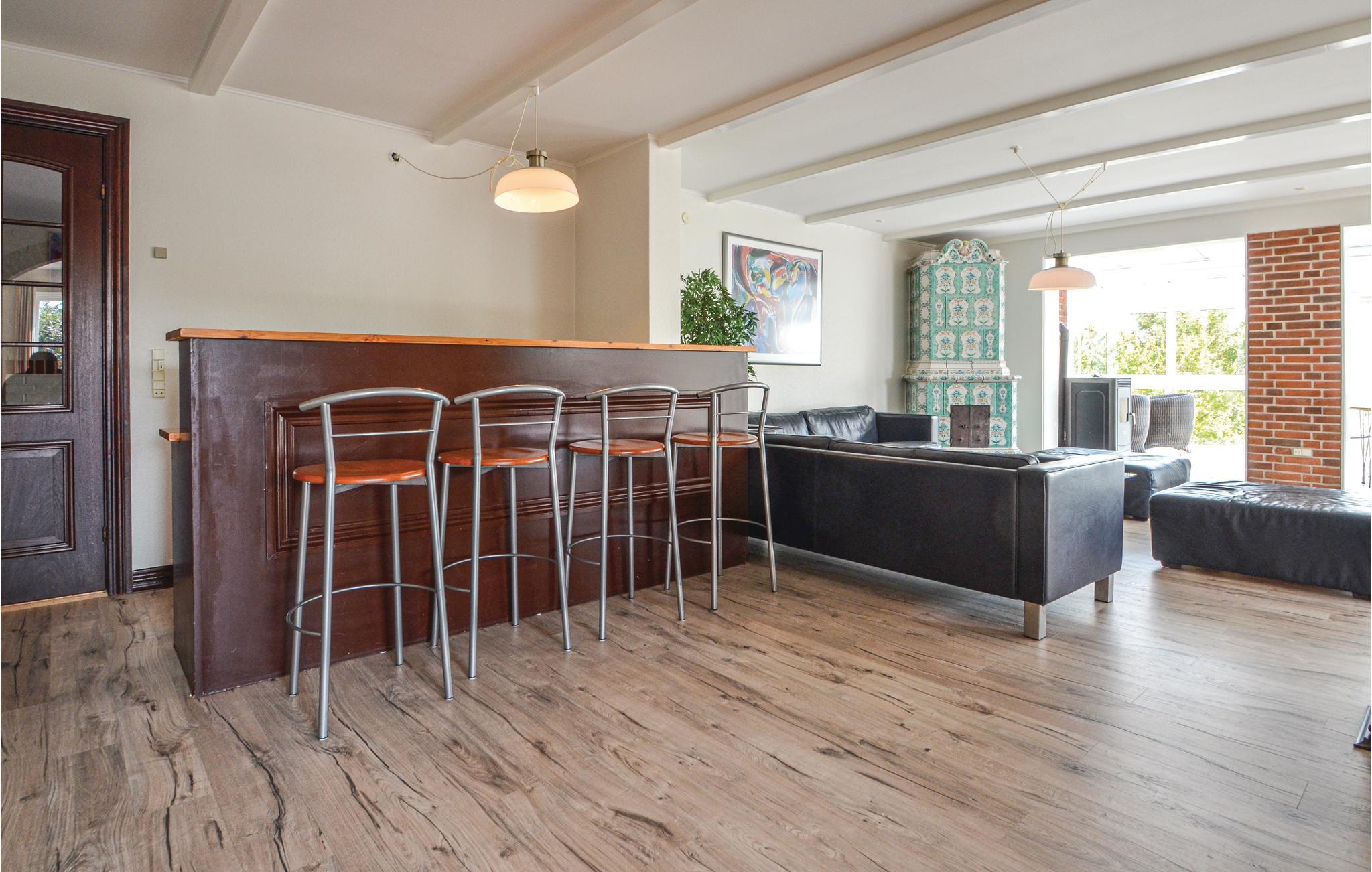 Huset består desuden af 10 soveværelser, 3 badeværelser og et stort køkken, hvor I nemt kan tilberede alle feriens måltider. I den store, åbne spisestue er der plads til alle omkring de lange borde, og I vil helt sikkert få nogle uforglemmelige dage sammen i dette hus.