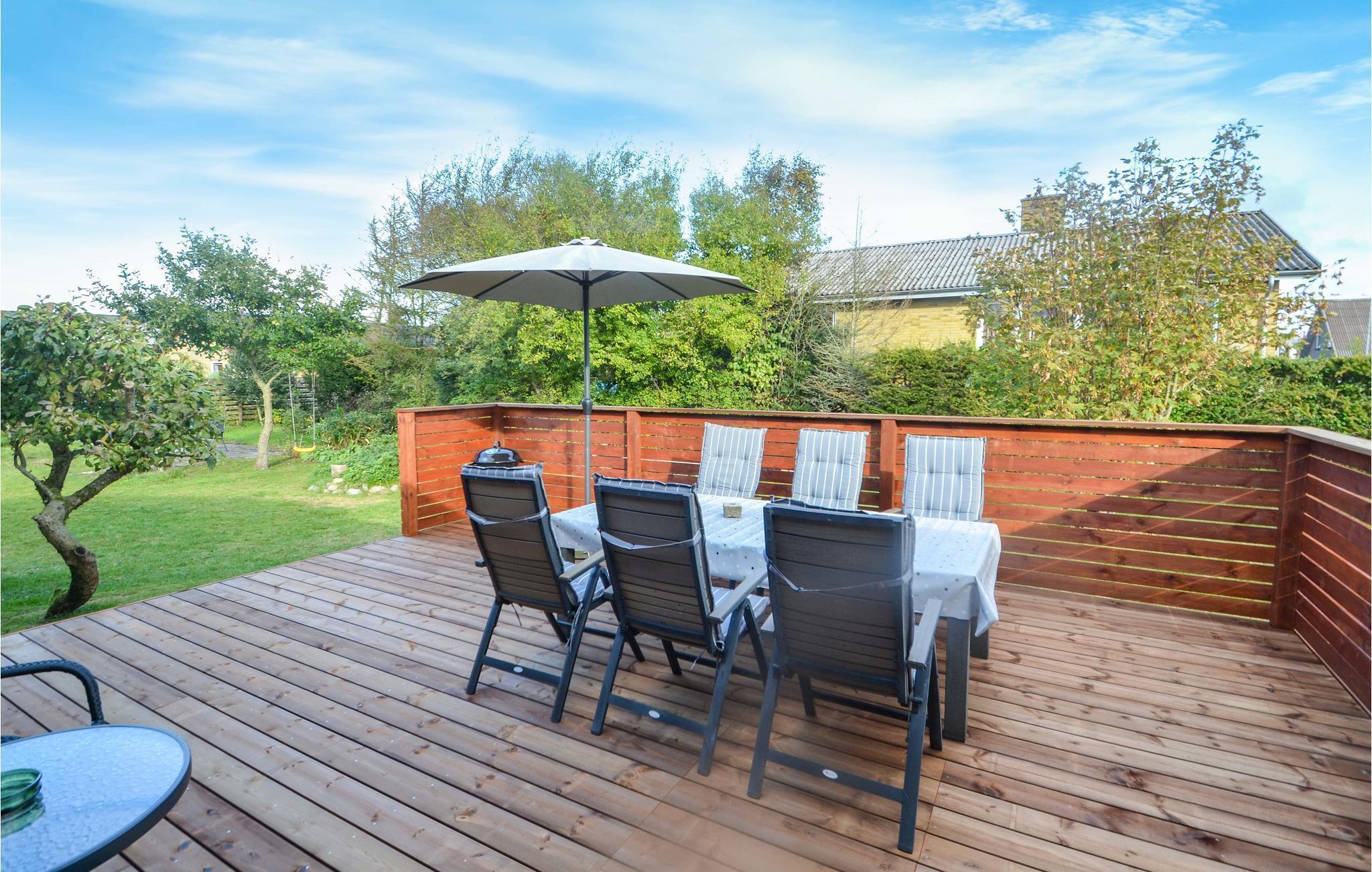 Her kan hele familien nyde hinandens selskab i det store åbne køkken, som ligger i forlængelse af opholdsstuen og spisestuen. Køkkenet er veludstyret med blandt andet opvaskemaskine, kaffemaskine og mikroovn. I badeværelset er der gulvvarme og vaskemaskine. På de lune sommeraftener kan I glæde jer til at slappe af på den fine træterrasse, hvor I også kan nyde jeres måltider både morgen og aften. I haven kan familiens yngste medlemmer få mange timer med at gå, her er masser af plads til leg og spil, og gyngen i det ene træ vil helt sikkert være et hit.