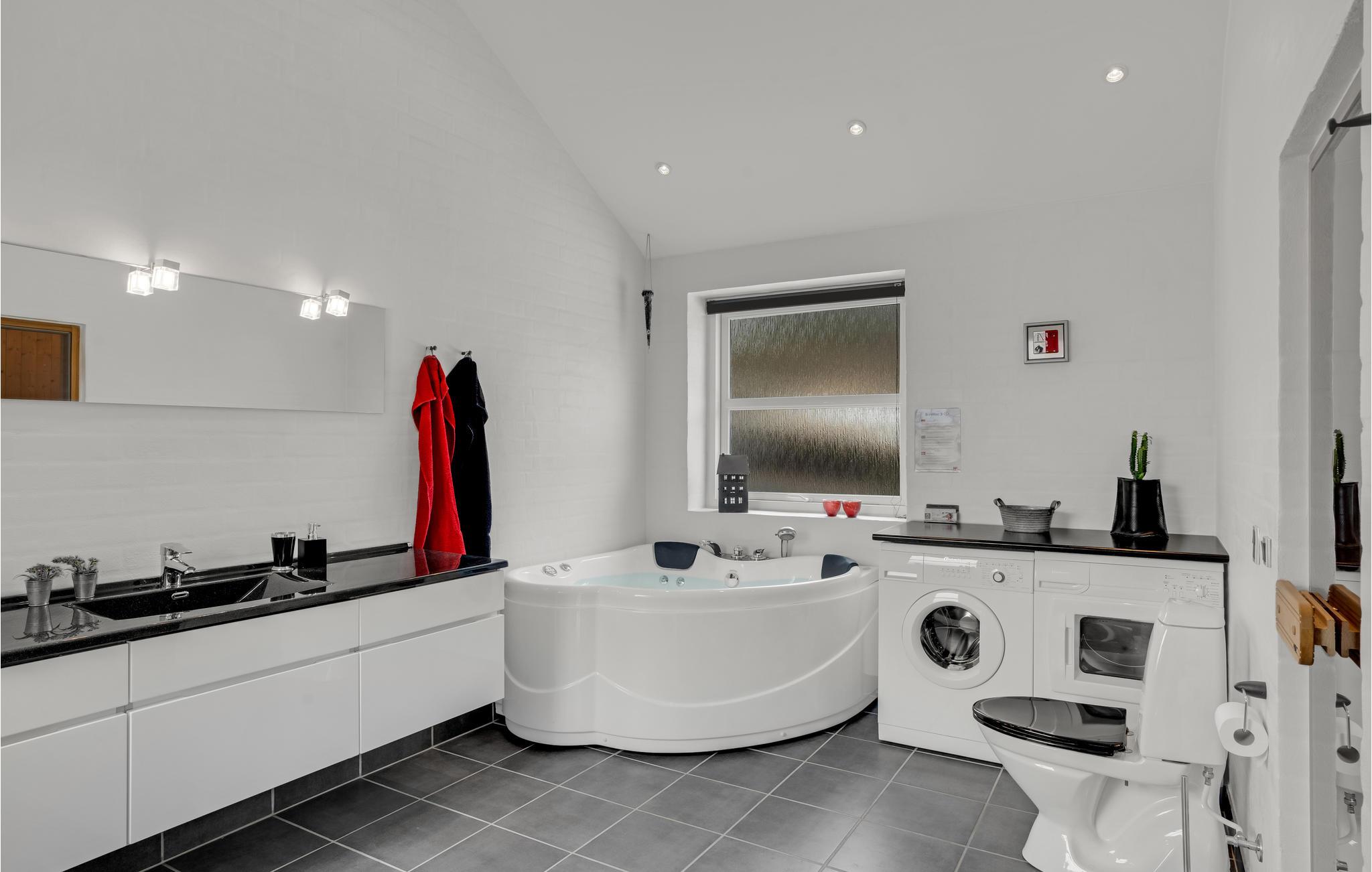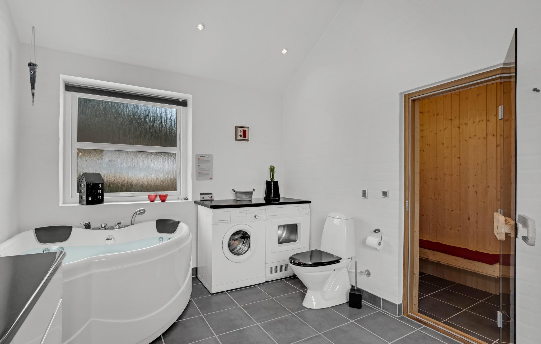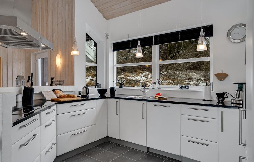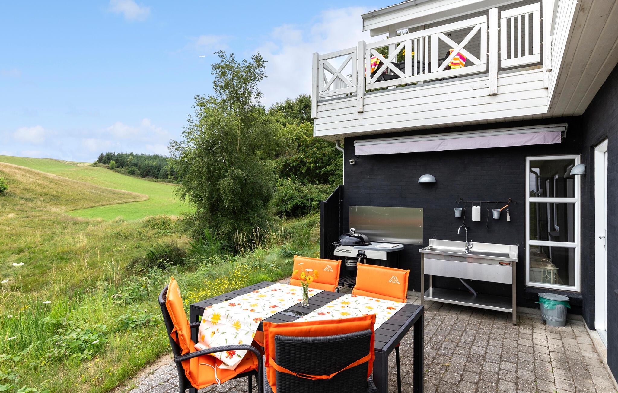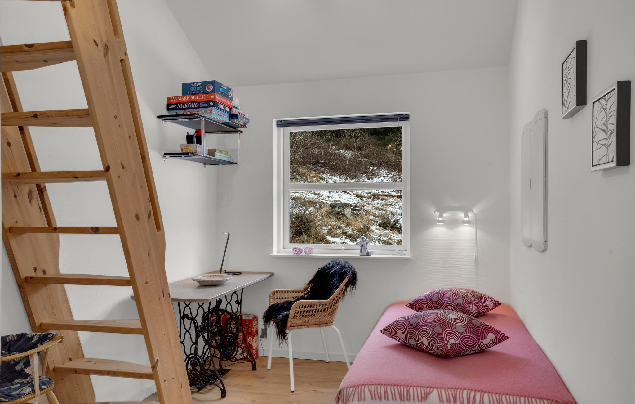 Her er der god plads og helt igennem skønne rammer til den store familie. Det store hus er meget veludstyret og giver jer gode forhold til hyggelige aktiviteter som brætspil, madlavning og afslapning efter en lang dag på farten. Ud over de dejlige lokaler, som har en fantastisk udsigt til naturen gennem de store vinduespartier, kan I også slappe af på badeværelset og få masseret musklerne i karret eller glemme alt om hverdagens travle program i saunaen. De to etager giver jer også mulighed for at vælge mellem forskellige steder til udeliv. Find en dejlig plet i solen eller skyggen og fyld sommeraftenerne med duften af grill.