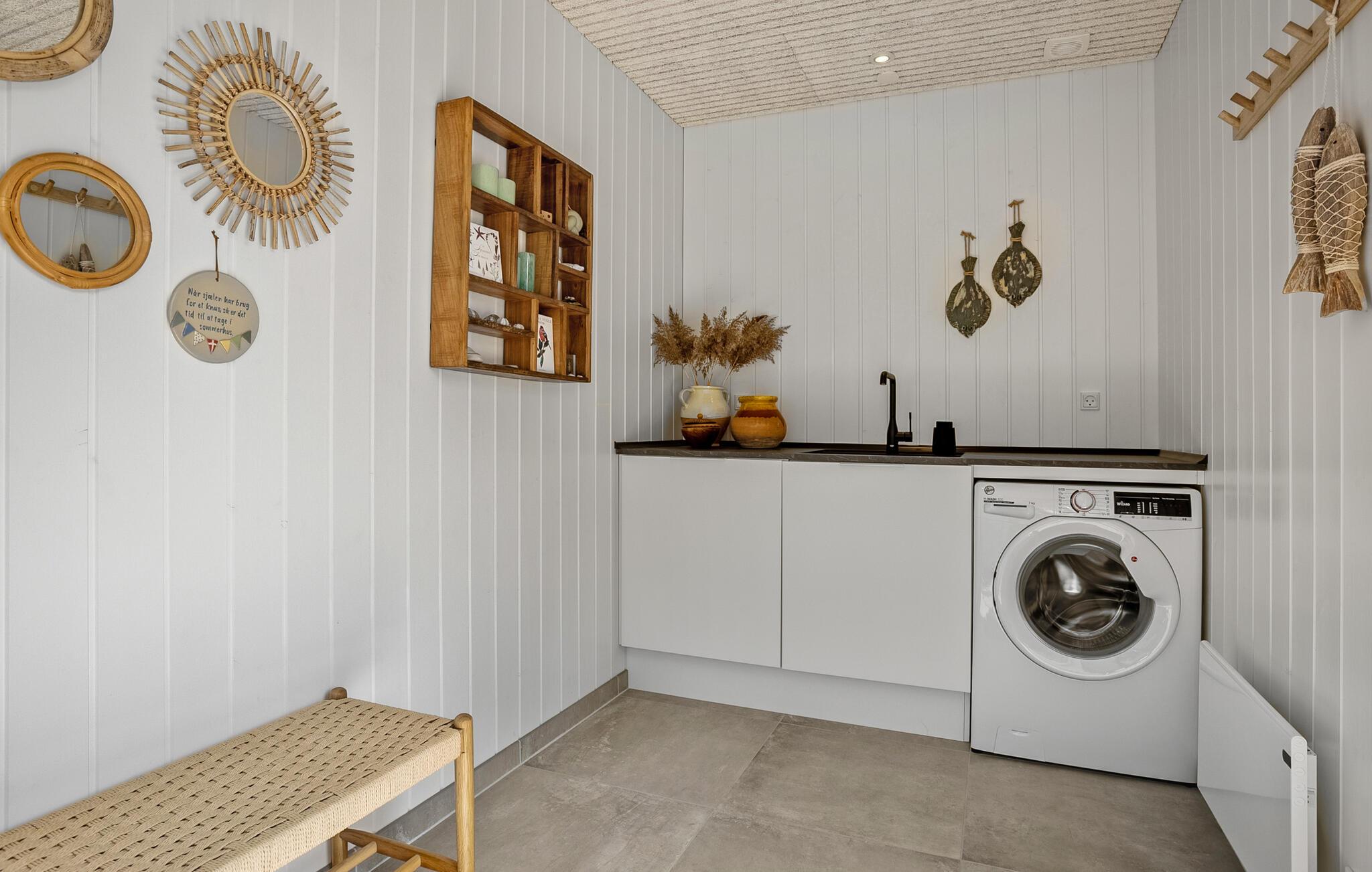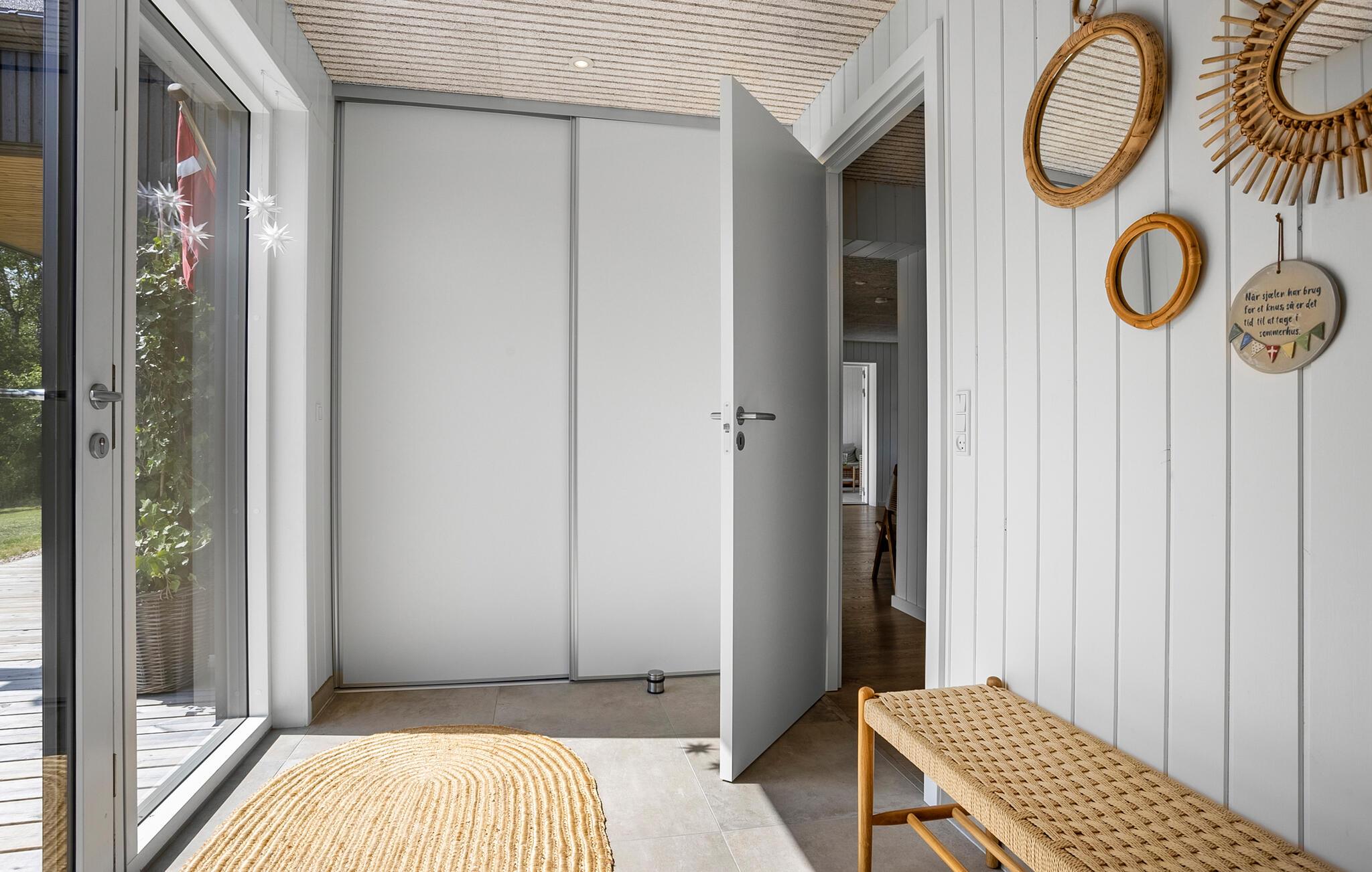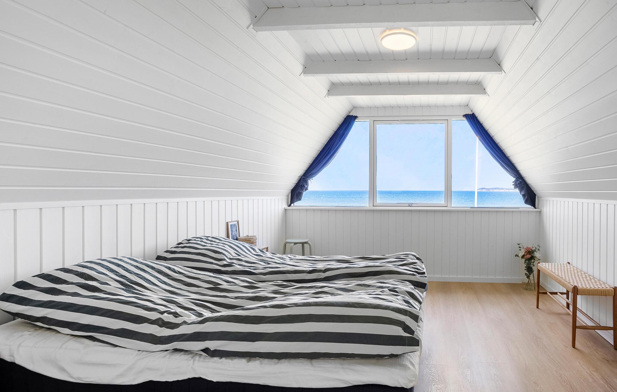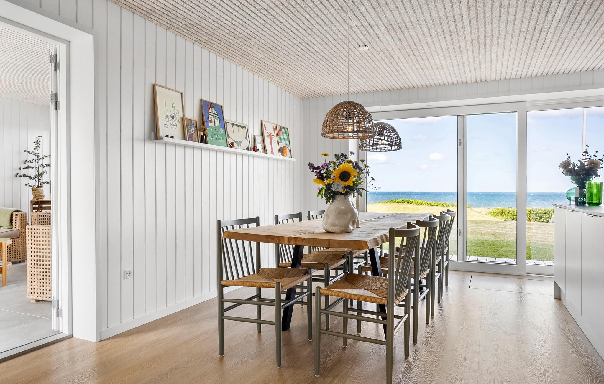 Dette komfortable og rummelige feriehus ligger nogle få skridt fra Limfjordens blå vand og forkæler jer med et lyst og smagfuldt møbleret interiør, hvor I kan nyde en fortryllende udsigt over vandet. Lad denne udsigt inspirere jer til at skabe kulinariske lækkerier i det moderne, åbne køkken og glæd jer til hyggelige måltider ved det lange spisebord.