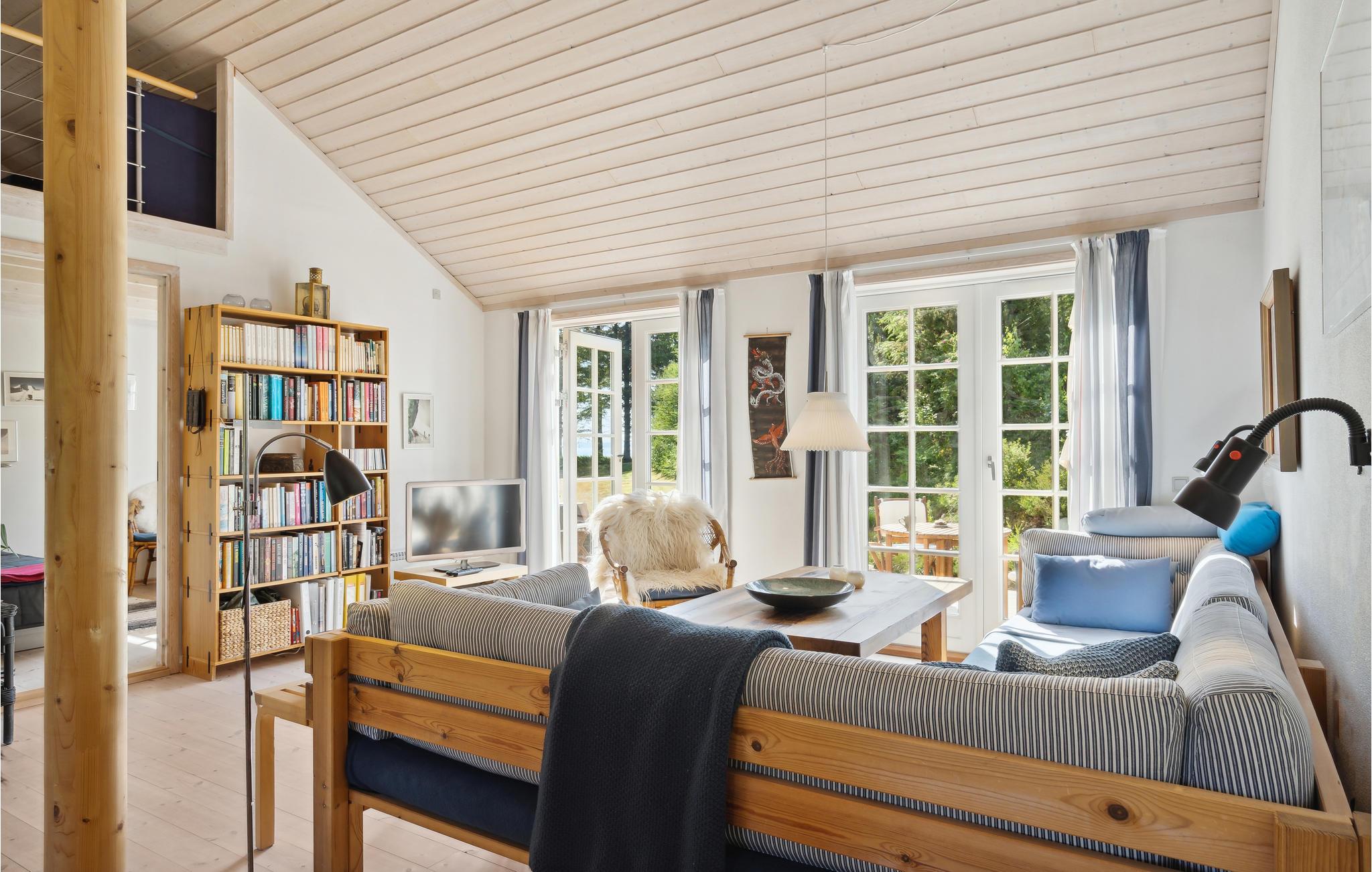 Velkommen til denne fredfyldte grund, som har en helt enestående beliggenhed på limfjordsøen Fur, blot 100 meter fra vandet. Midt på den skovklædte grund ligger dette elegante sommerhus, som kan blive jeres base i nogle feriedage, hvor I kan komme helt ned i tempo. Huset er indrettet med flotte kvalitetsløsninger og mange hyggekroge, så I kan se frem til gode timer, hvor alle hygger sig med fælles aktiviteter eller en lille alenestund. Tænd op i brændovnen på de kølige aftener og find sammen om brætspil. køkkenet har en dejlig udsigt til de grønne omgivelser, som I kan nyde, mens I står og laver mad.