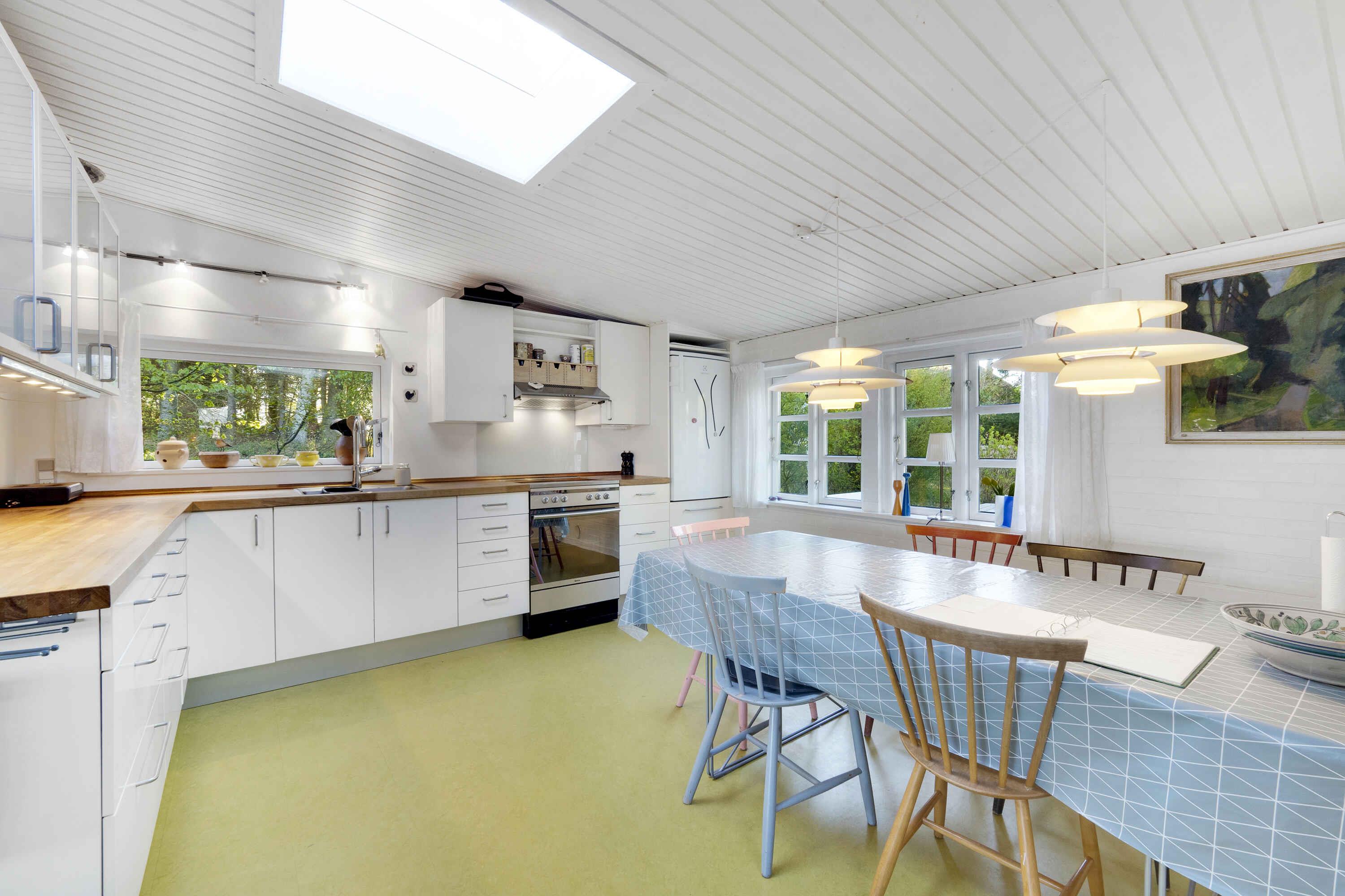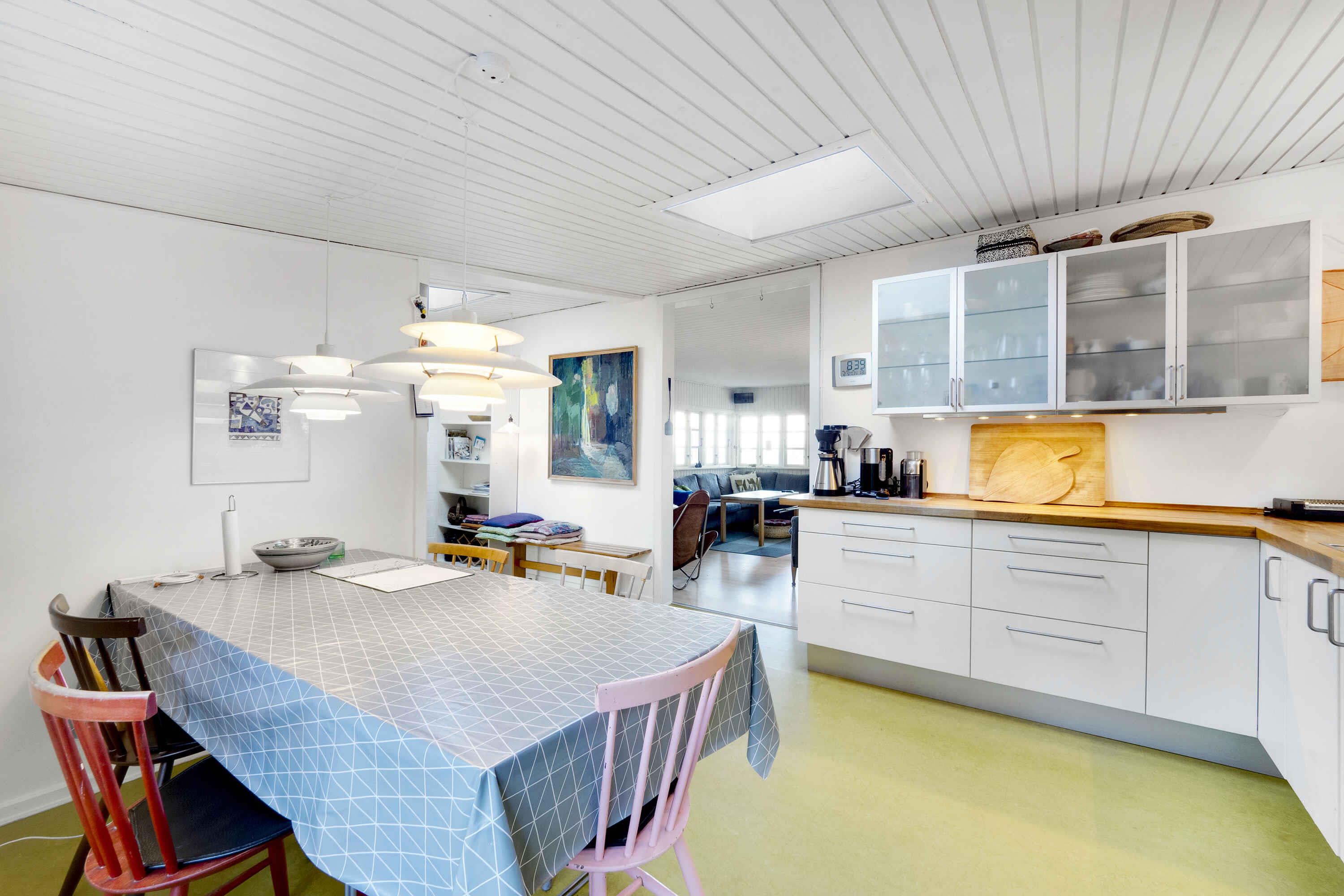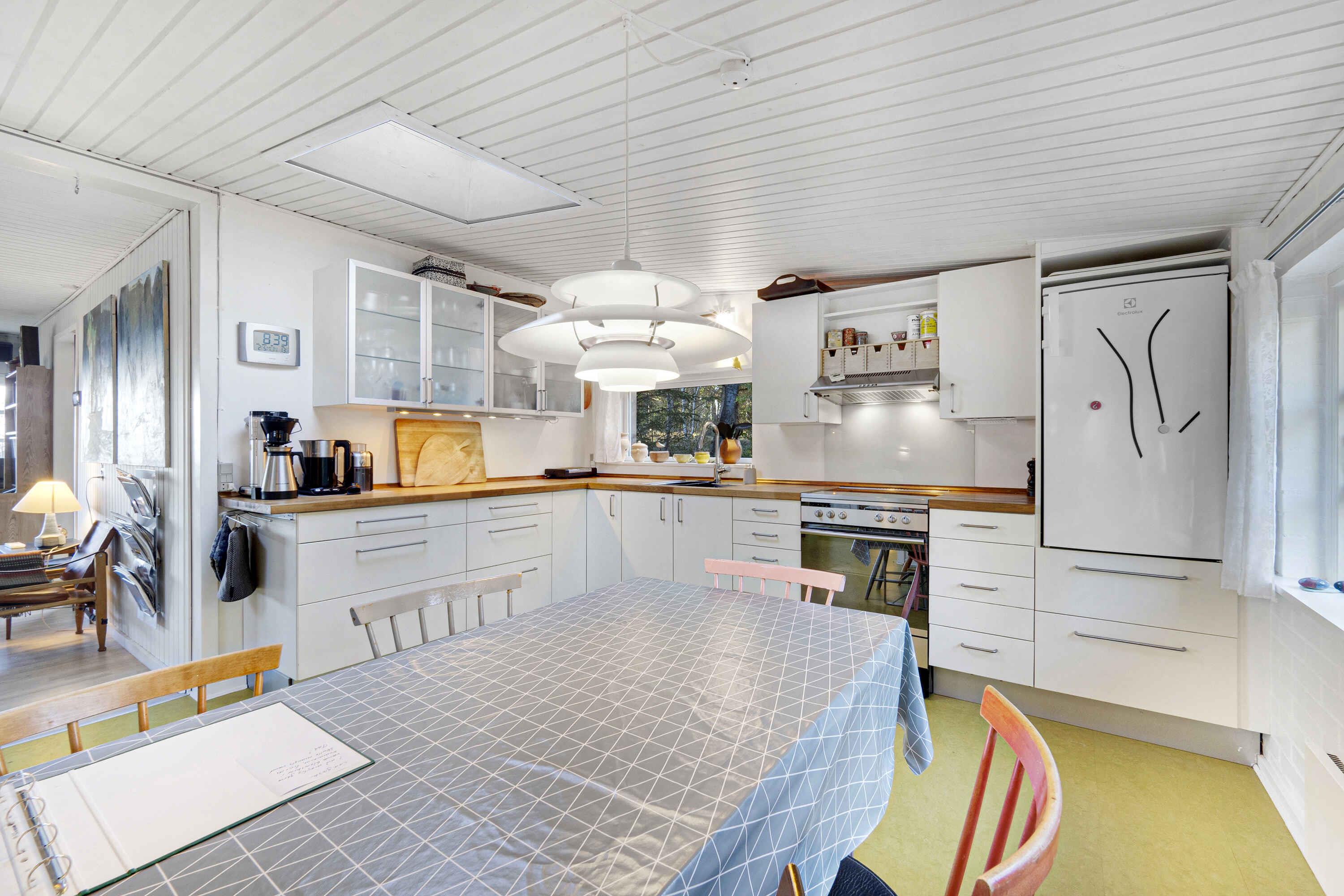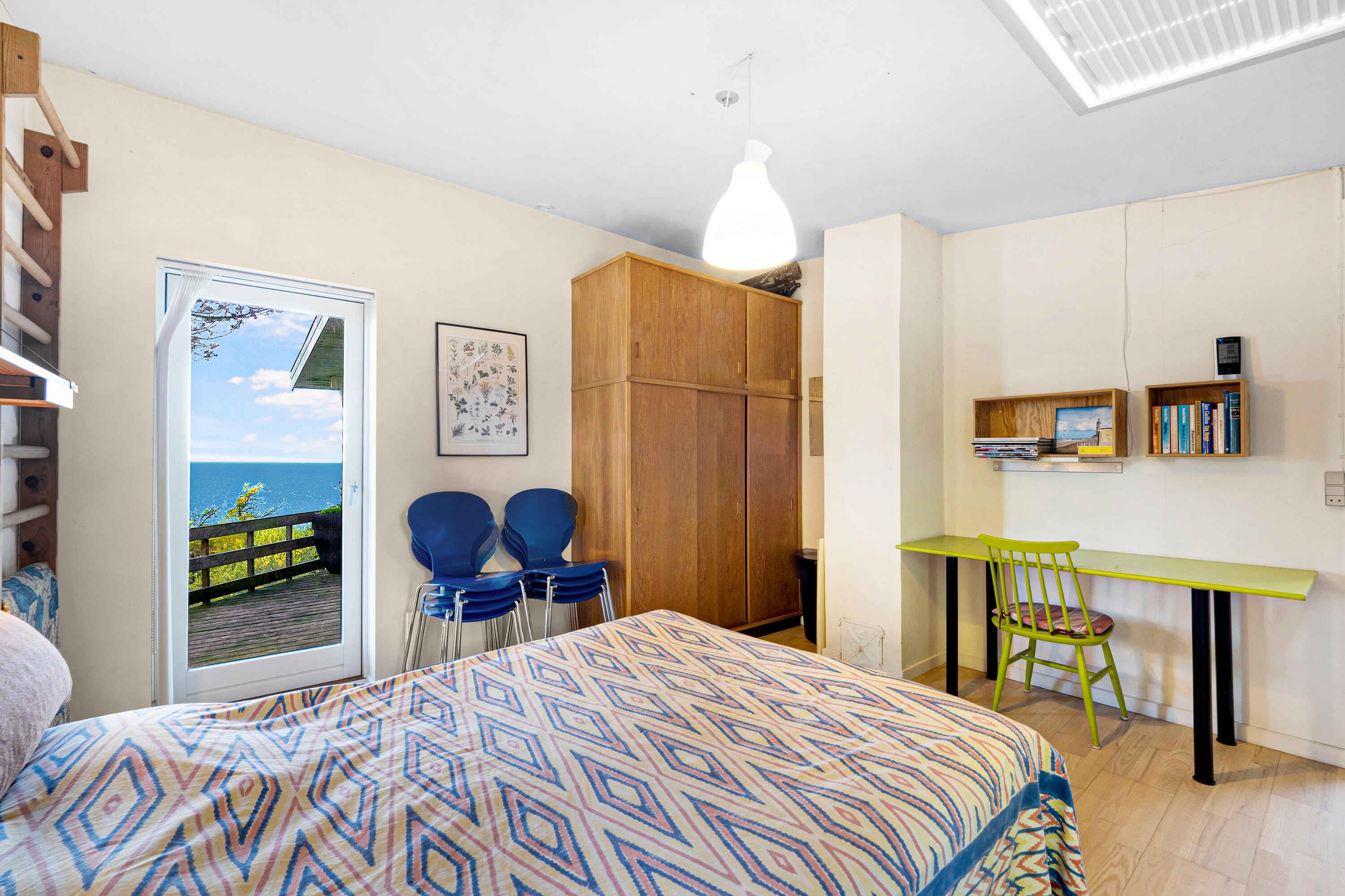 Sommerhus med fantastisk udsigt på Fur. På nordkysten af Fur finder I dette unikt beliggende sommerhus med panoramaudsigt over Limfjorden og Mors. Sommerhuset er beliggende på 12000 m2 naturgrund ca. 200 m fra vandet, højtbeliggende og derfor med enestående udsyn. Sommerhuset er hyggeligt indrettet i ægte sommerhusstil med terrasser mod nord og syd. Helt ideelt til en afslappende og skøn ferie. Løbende renoveret og fremstår velholdt. Sommerhuset er komfortabelt indrettet og energivenligt med solceller, varmepumpe og brændeovn (brænde købes på øen, fx på Boagervej 1A). Veludstyret spisekøkken med køleskab og fryser. Stuen er indrettet med komfortable møbler, og der er kabel-tv, Apple-TV, danske/skandinaviske kanaler samt en del tyske. Der er stereoanlæg med cd-afspiller og tuner. Ligeledes er der gratis trådløst internet. Sommerhuset er indrettet med 2 soveværelser med dobbeltsenge (queen size) samt et anneks, også med queensize dobbeltseng. Udgang til den overdækkede nordterrasse direkte fra de 2 soveværelser, og hvor I kan nyde de utroligt smukke solnedgange. Stor græsplæne med bålfad. Badeværelse med bruseniche. Til de små feriegæster er der høj barnestol og barneseng. Udlejes ikke til ungdomsgrupper. Fur er en lille, charmerende og velfungerende ø midt i Limfjorden med et kuperet landskab og ideelt til gå- og cykelture i den meget afvekslende og særlige natur. Et af øens varemærker er det berømte Fur Bryghus, hvor I både kan nyde gourmetmad og deres velrenomerede, lokale øl. Fossiljagt i moleret ved kystklinterne er fascinerende, og på Fur Museum kan I se en enestående samling af 55 millioner år gamle fossiler. Fur er også kendt for sit gode kystfiskeri efter havørred og hornfisk. I øvrigt er Fur i gang med at blive optaget på UNESCO’s liste over verdens mest unikke naturseværdigheder. Se fotos fra øen i billedsektionen. Obs, udlejes ikke til erhversmæssigt brug.