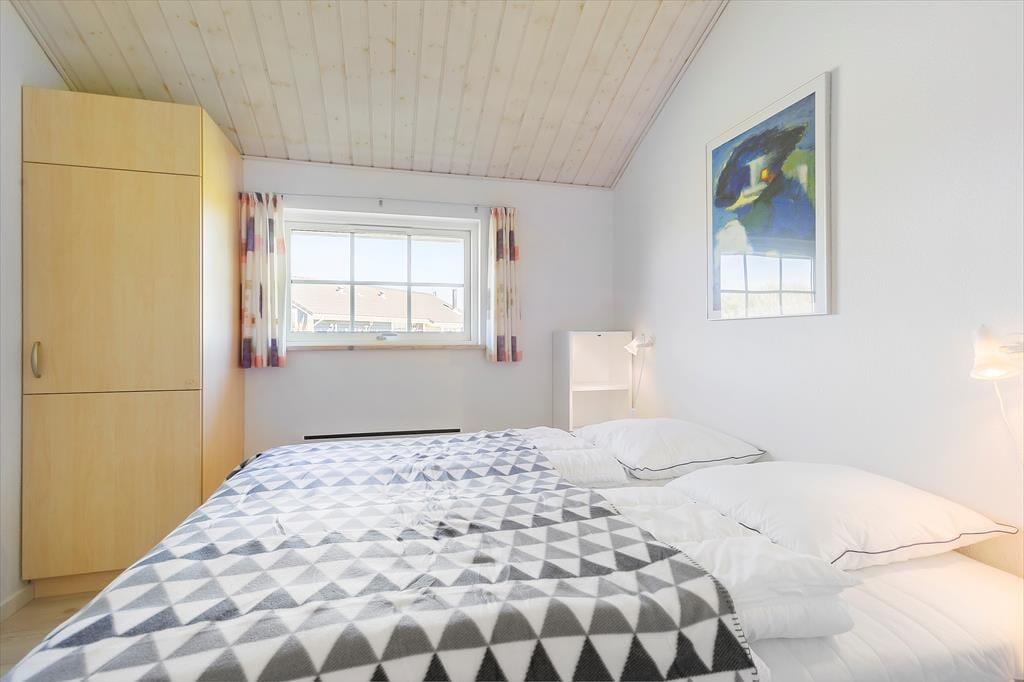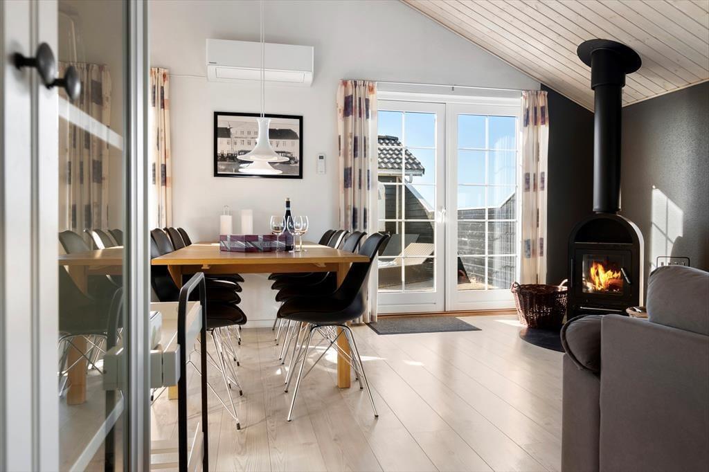Sommerhuset er stilfuldt indrettet og fremtræder lyst og atmosfærefyldt. Sommerhuset indeholder 4 rummelige soveværelser med dobbeltsenge, et gæstetoilet og et stort badeværelse med spa og sauna. Opholdsrummet fremtræder lyst og hyggeligt og er sammenhængende med det åbne veludstyrede køkken, og herfra har man adgang til den lukkede terrasse.