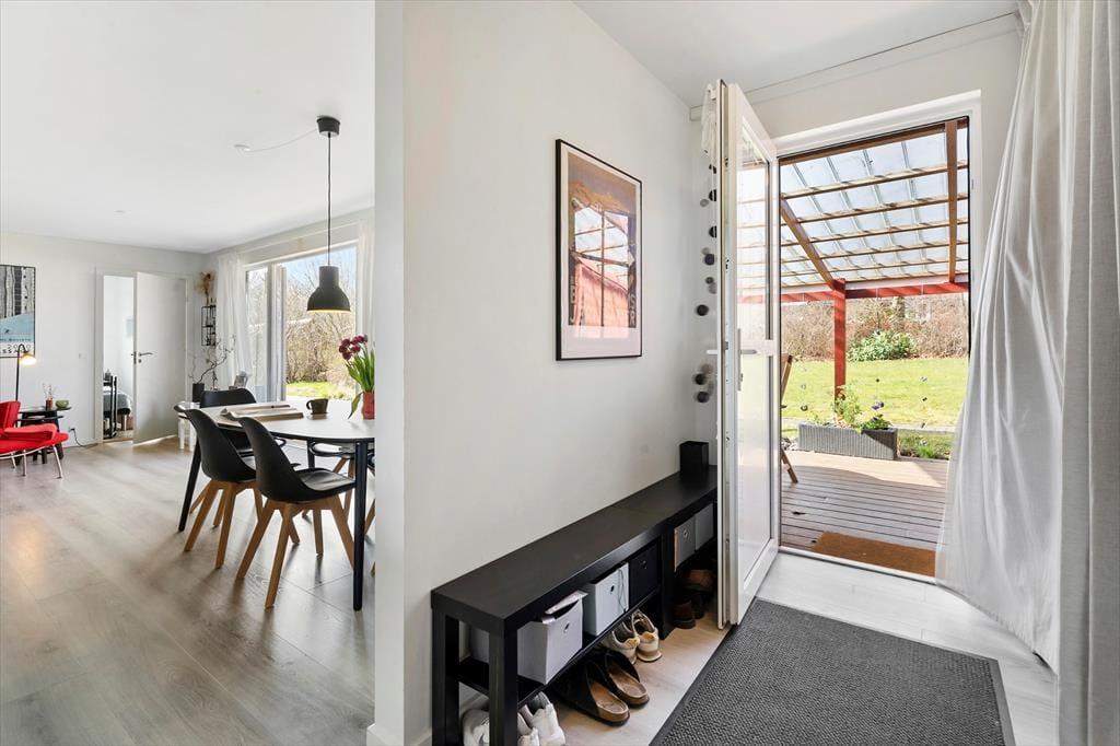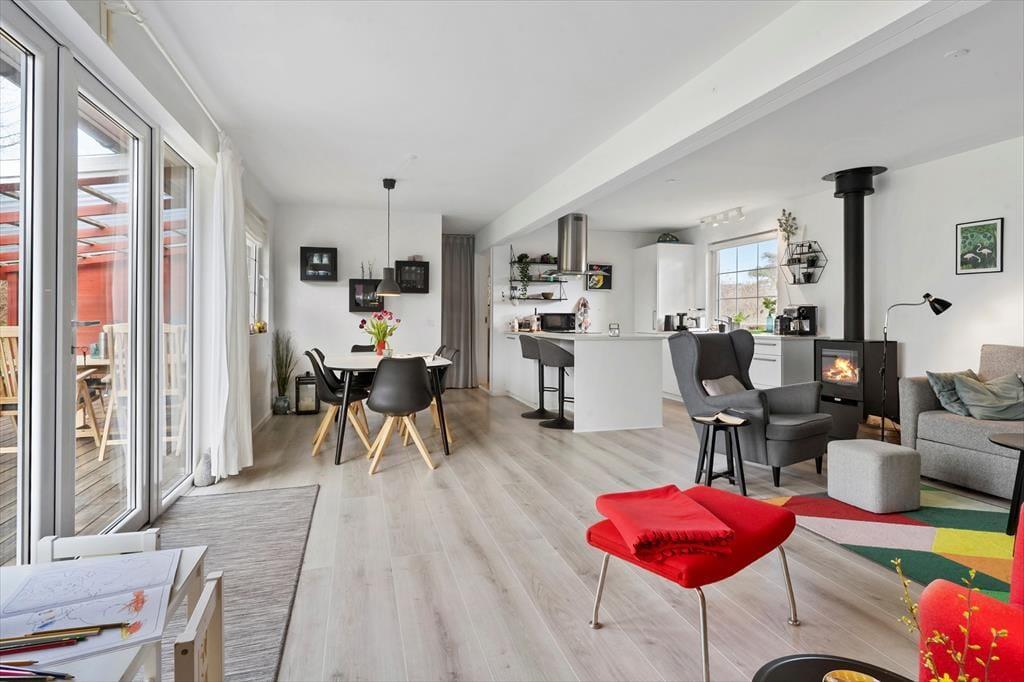 Boligen er på 80 m² og ligger på en 1.200 m² stor grund, hvor der bl.a. er sandkasse.