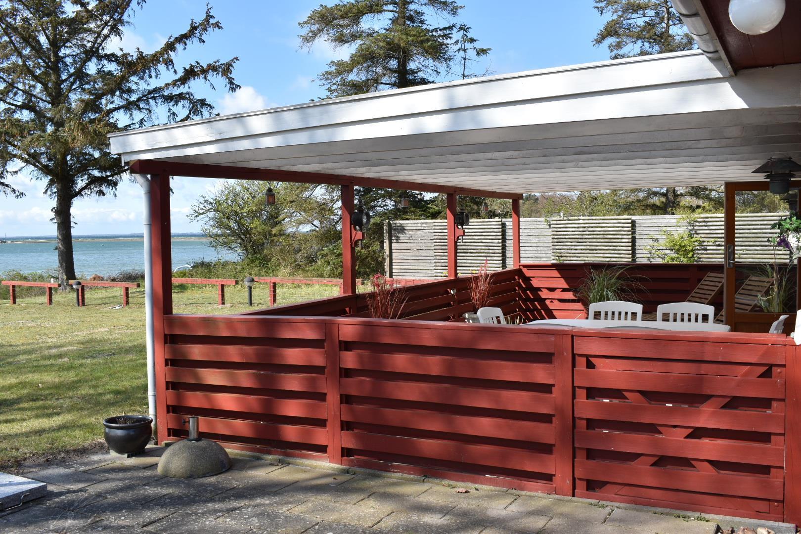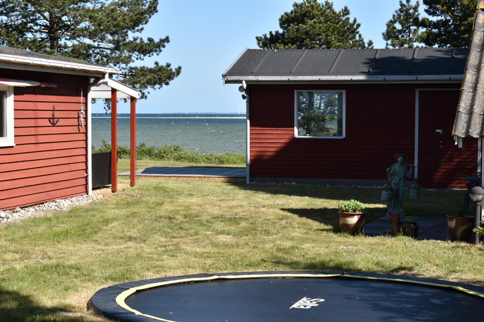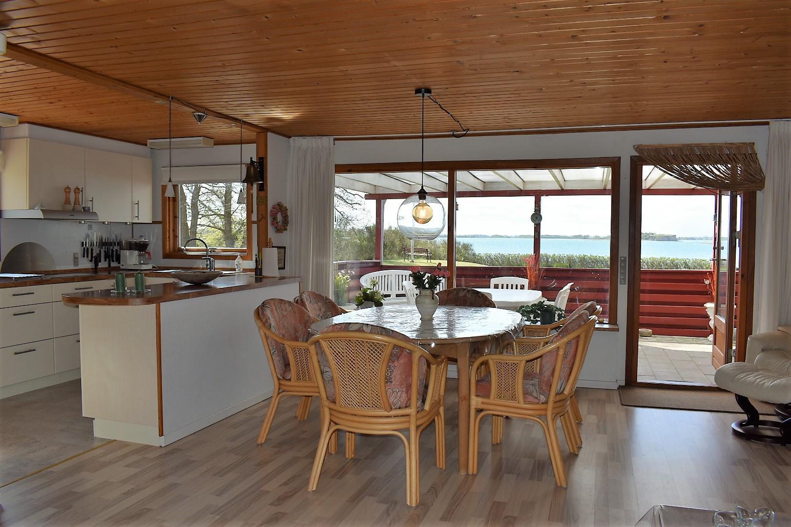 Fra sommerhuset kan du nyde udsigten til den private strand og den charmerende lille havn Korshavn mod syd. Mod nord venter en betagende panoramaudsigt over lagunen og det majestætiske landskab ved Fyns Hoveds spids.