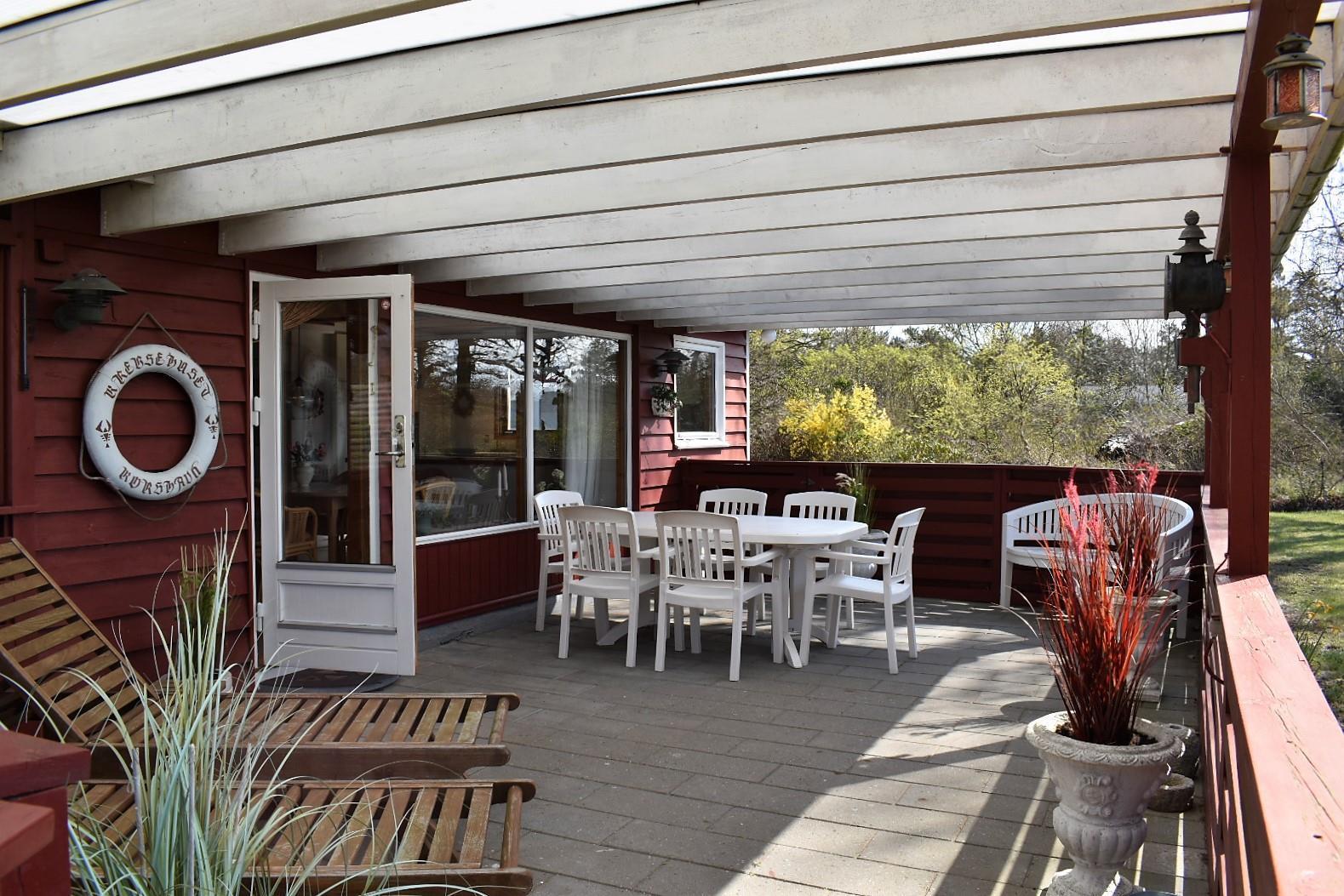 Indendørs er huset lyst og venligt med en stue i åben forbindelse med et nyere køkken. Stuen er udstyret med et stort Smart-TV, hvor du via Chromecast kan streame fra din egen mobil eller tablet. Herfra er der direkte adgang til en stor, overdækket terrasse, hvor du kan nyde solopgangen over stranden eller udsigten til bådene i Korshavn.